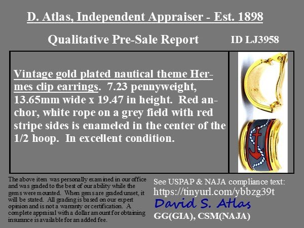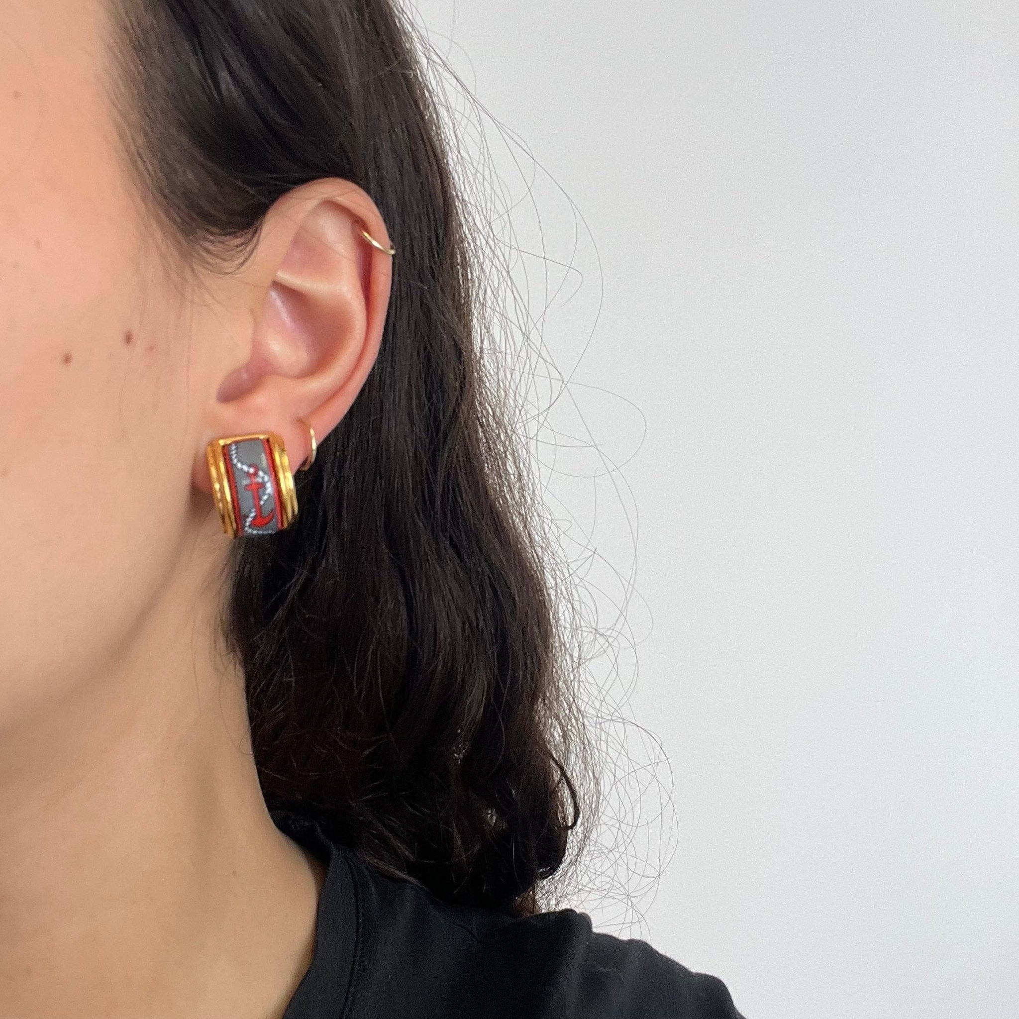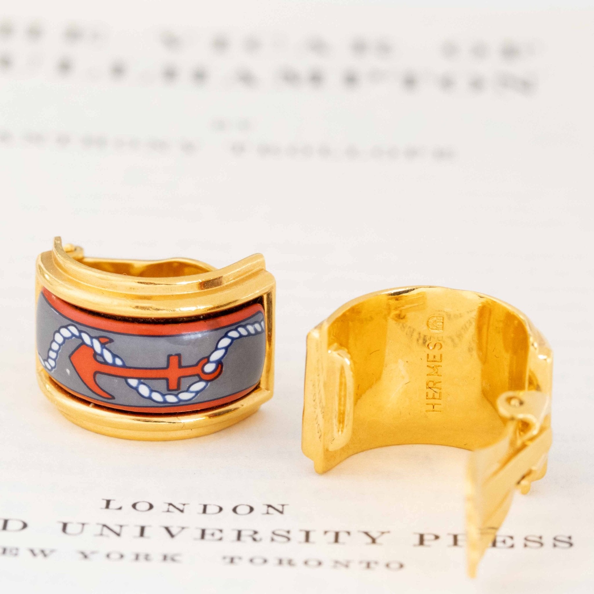 A sweet pair of enamel and gold plate earrings from Hermes with beautiful color and proportion! Perfect for fans of Hermes, nautical motif jewels, or even a younger loved one starting their jewelry collection.