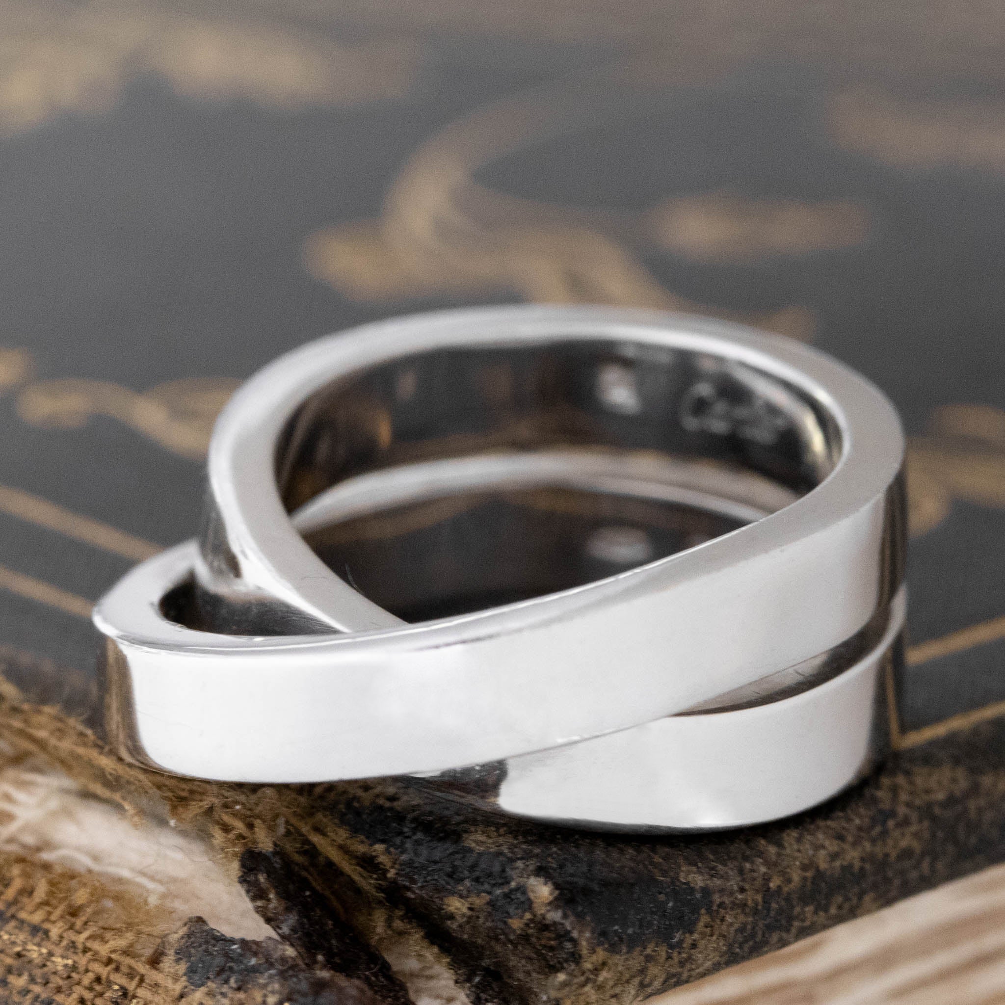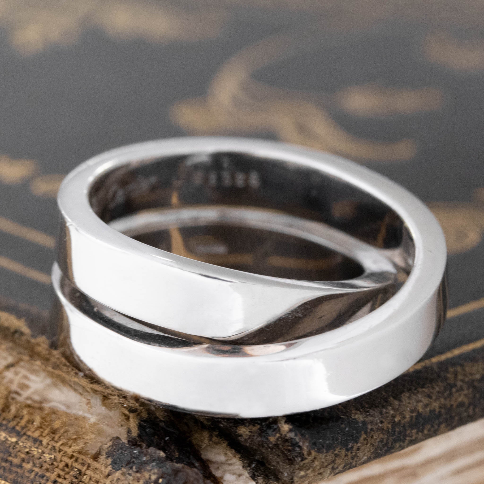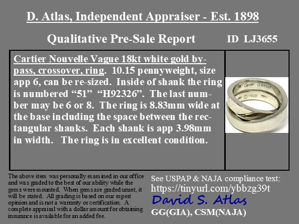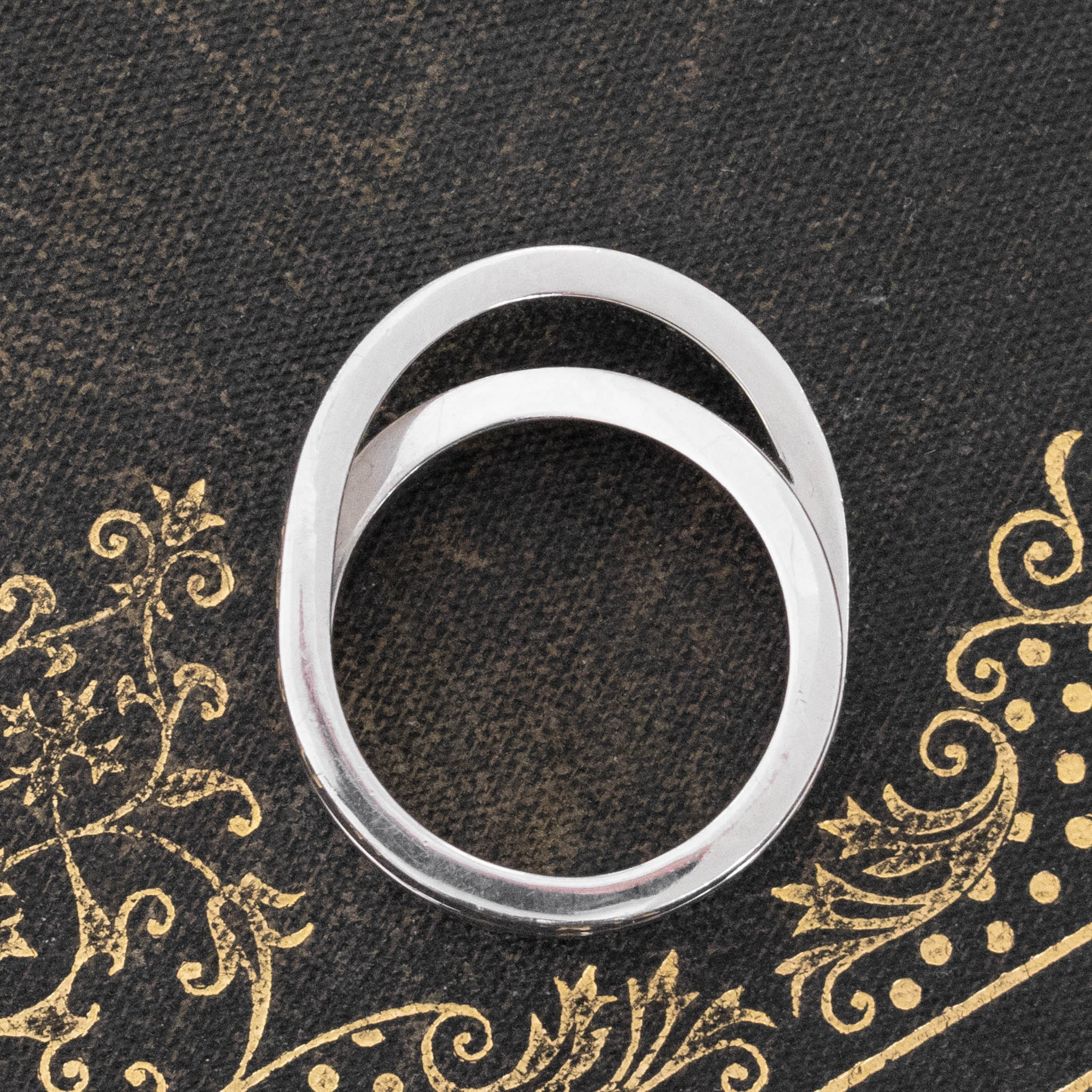 From Cartier’s “Nouvelle” collection, which loosely translates to “new,” or something that has been newly invented or created. This this chunky crossover band from the famous French jewelry house is a gorgeous band option for somebodu looking for a bit of heft on the finger. We love the use of two thicker, more substantial bands to cross over - wonderfully elegant and bold.