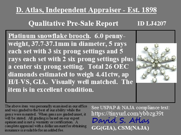 4.41ctw Vintage Old European Cut Diamond Snowflake Brooch/Pendant