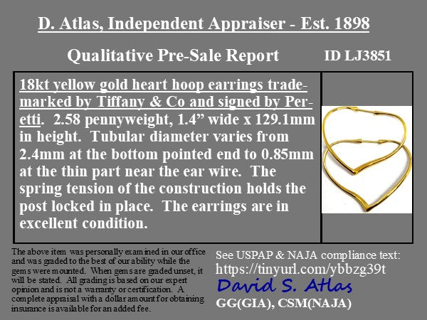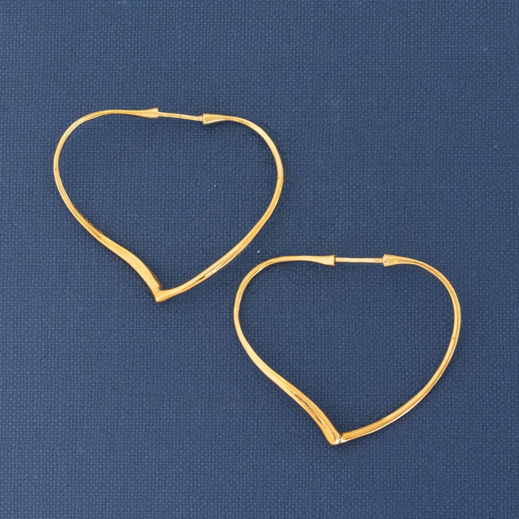 The coolest hoops by iconic designer Elsa Peretti fir Tiffany and Co. The hoops are on the bigger size for scale, shaped like a freeform heart, but light on the lobes for comfort. Adorable on the lobes, and perfect addition to your Peretti collection.