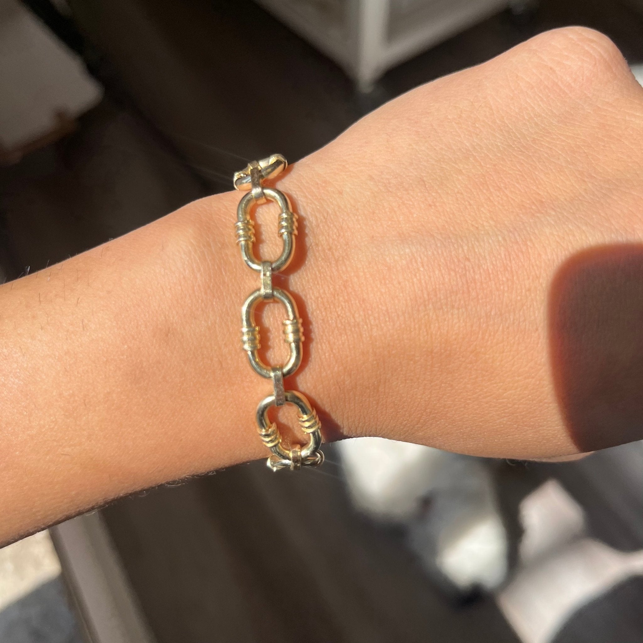 A vintage oval link bracelet with a little more va-voom on its details - and a most perfect vehicle to wear on its own, as well as to stack with other pieces too. Not to mention, she's also the perfect vehicle for charms!