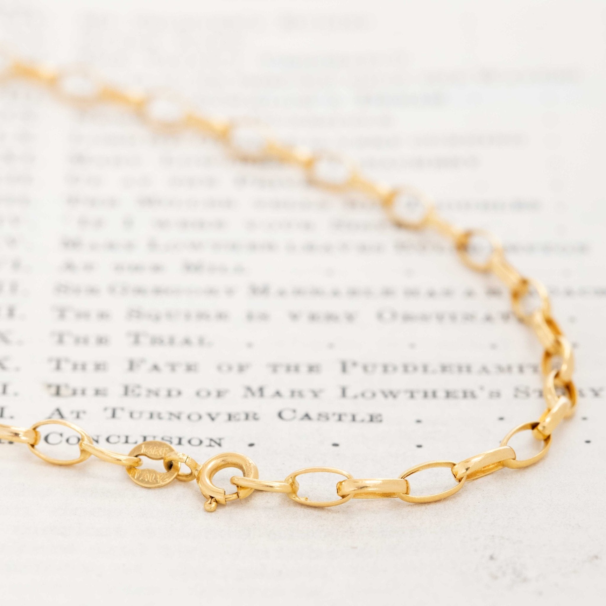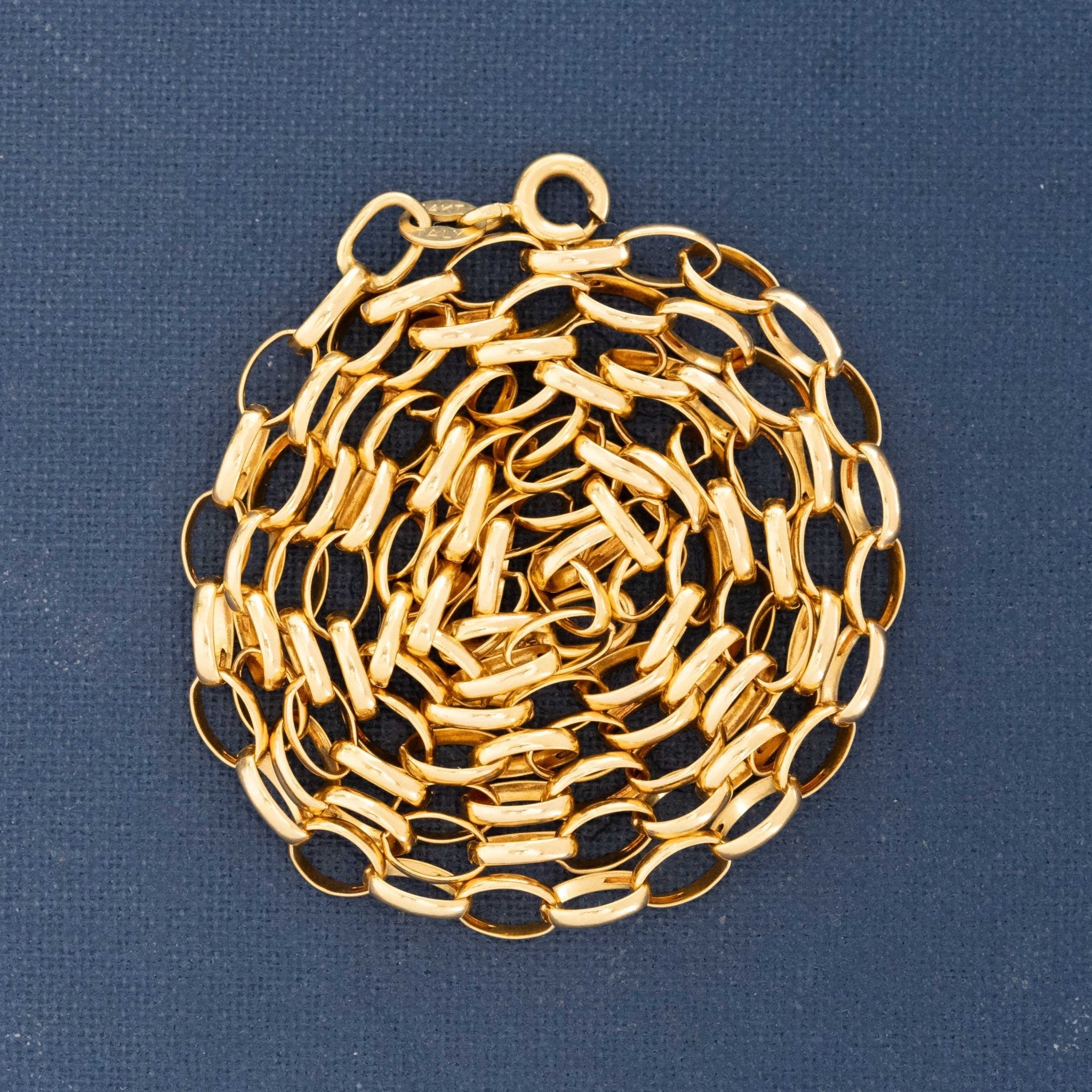If you are looking for a bigger scaled chain for maximum impact, you may have found it! Oval links in a great 22" length is perfect both worn solo, as well as layered with other pieces.