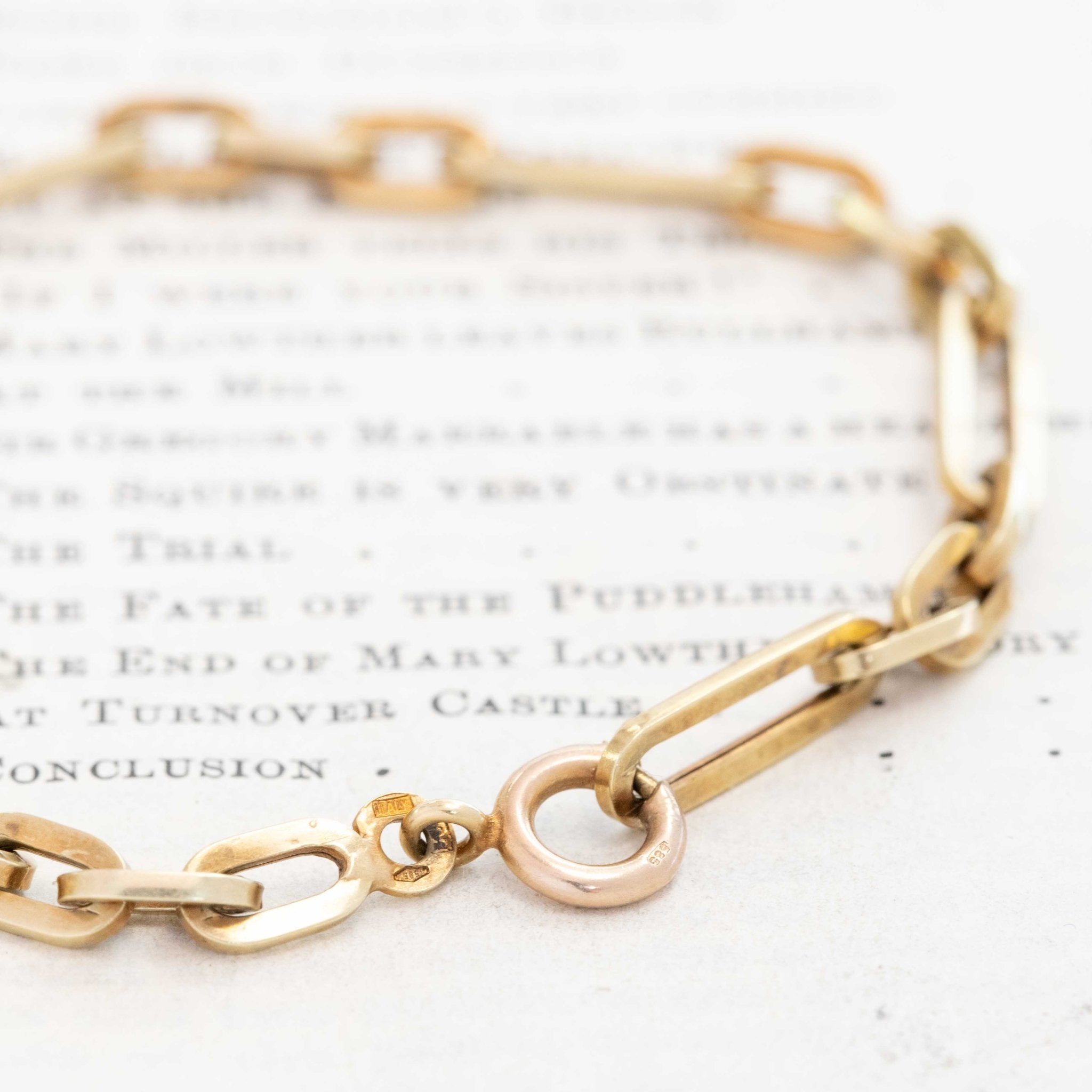 A charming vintage gold link bracelet with a spring ring clasp and Italian stamps! She'd make an excellent addition to one's wrist stack, or even the anchor to your next charm bracelet.