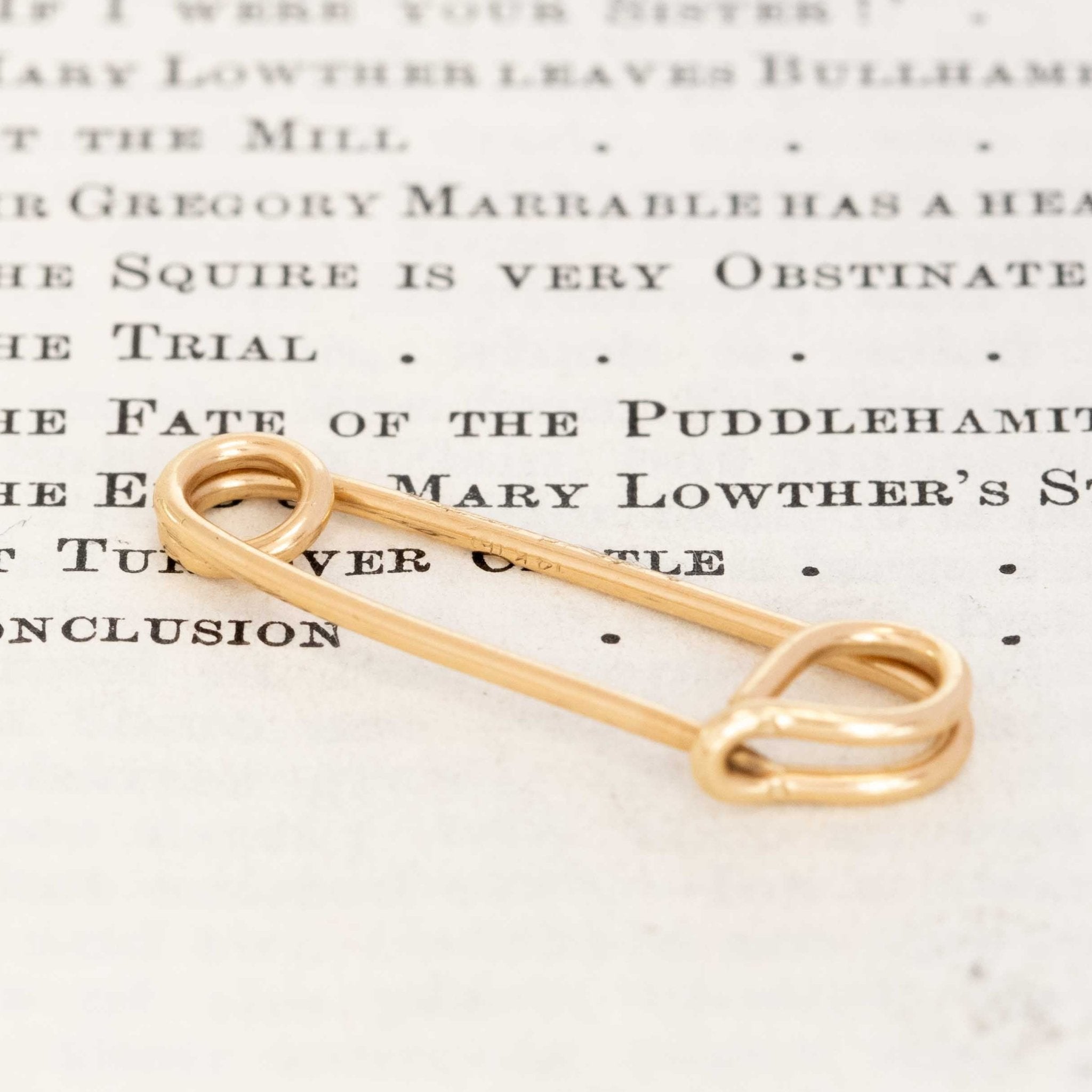 Adorable gold safety pin - as charming as it is functional! It can hold charms and worn as a pendant, it can be a scarf pin, or simply pinned to one's lapel for a little decorative flair.