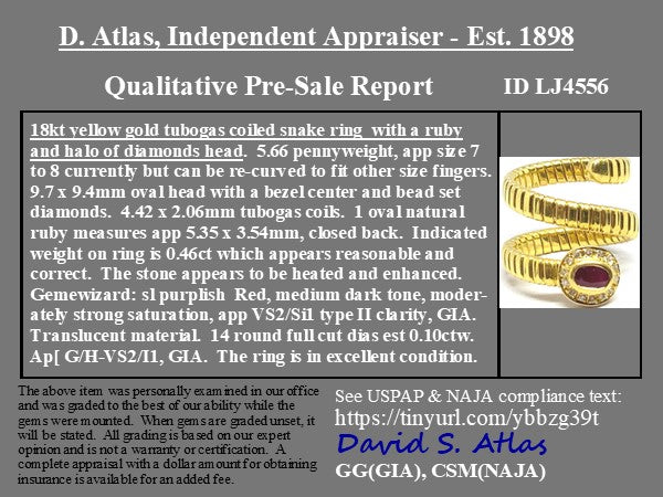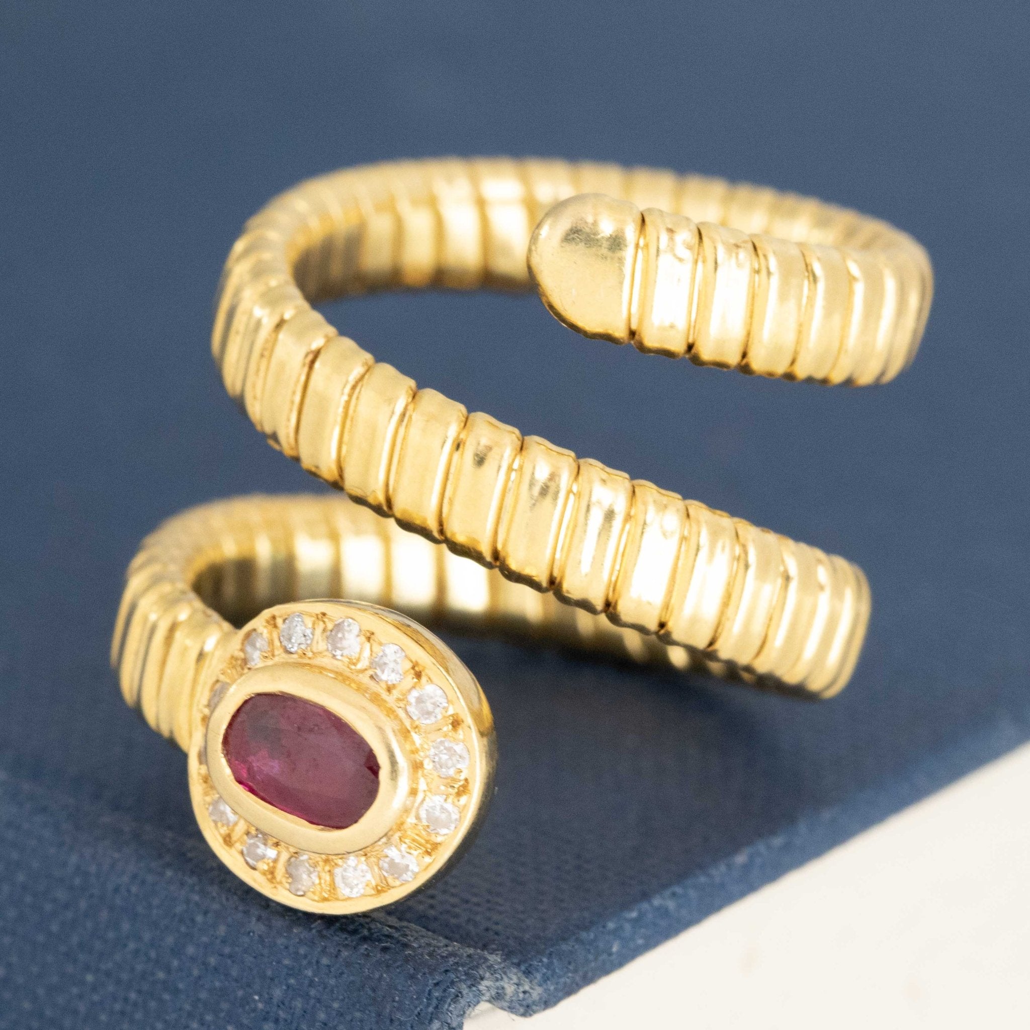 Vintage Ruby & Diamond Serpent Motif Tubogas Ring