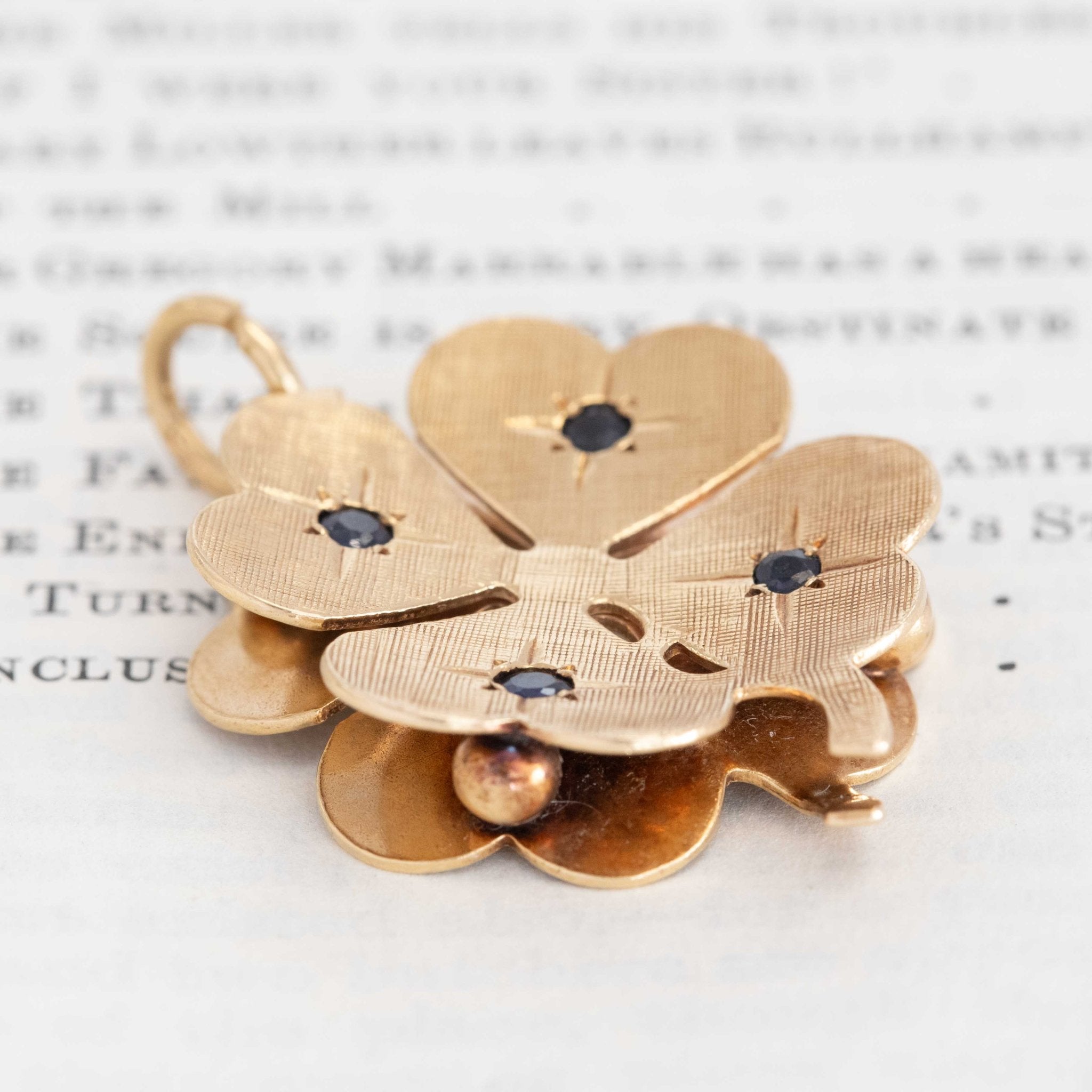 Four-leaf clovers have long symbolized luck, love, faith, and hope, making these charms especially popular gifts and personal talismans throughout the mid-20th century.