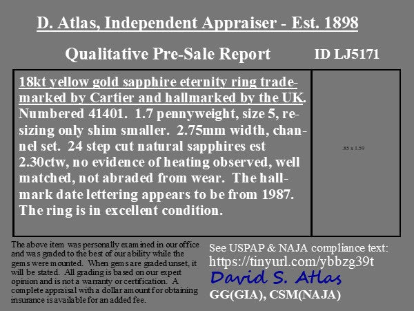2.30ctw RARE Vintage Sapphire Eternity Band, by Cartier London