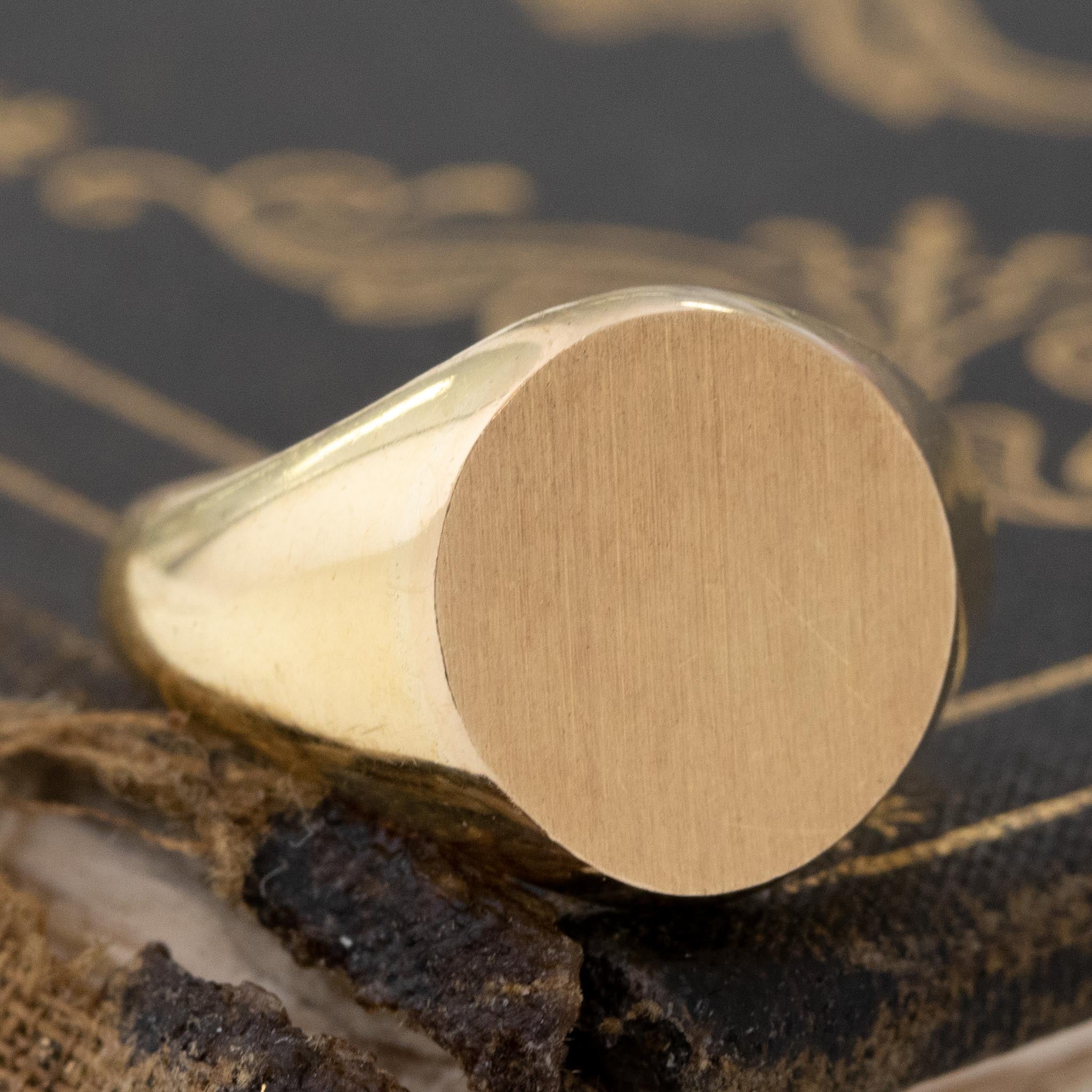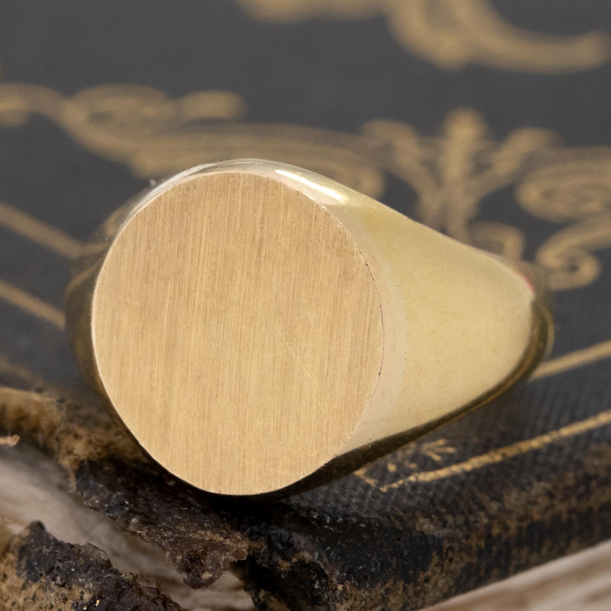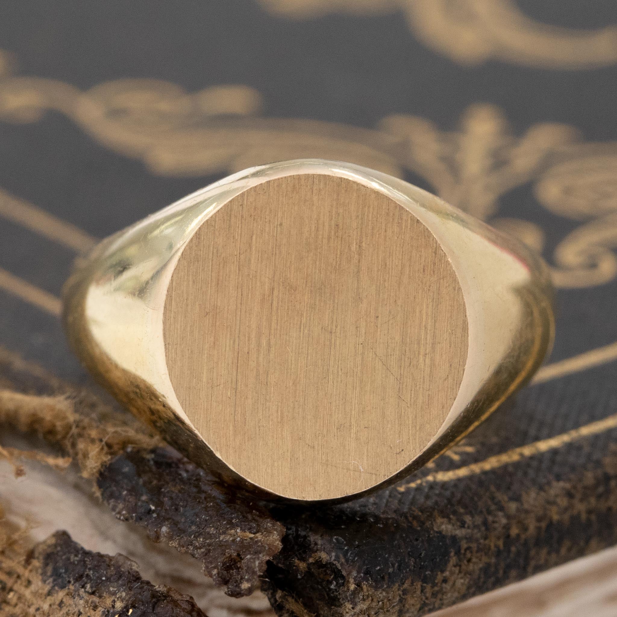 If you are looking for a vintage signet ring upon which you can add your own mark (literally), this vintage ring is the ring for you! Appearing to have never been engraved or stamped, the ring is nice and hefty, sitting nice and low on the finger. A perfect ring for both genders!