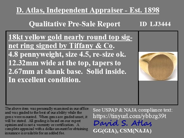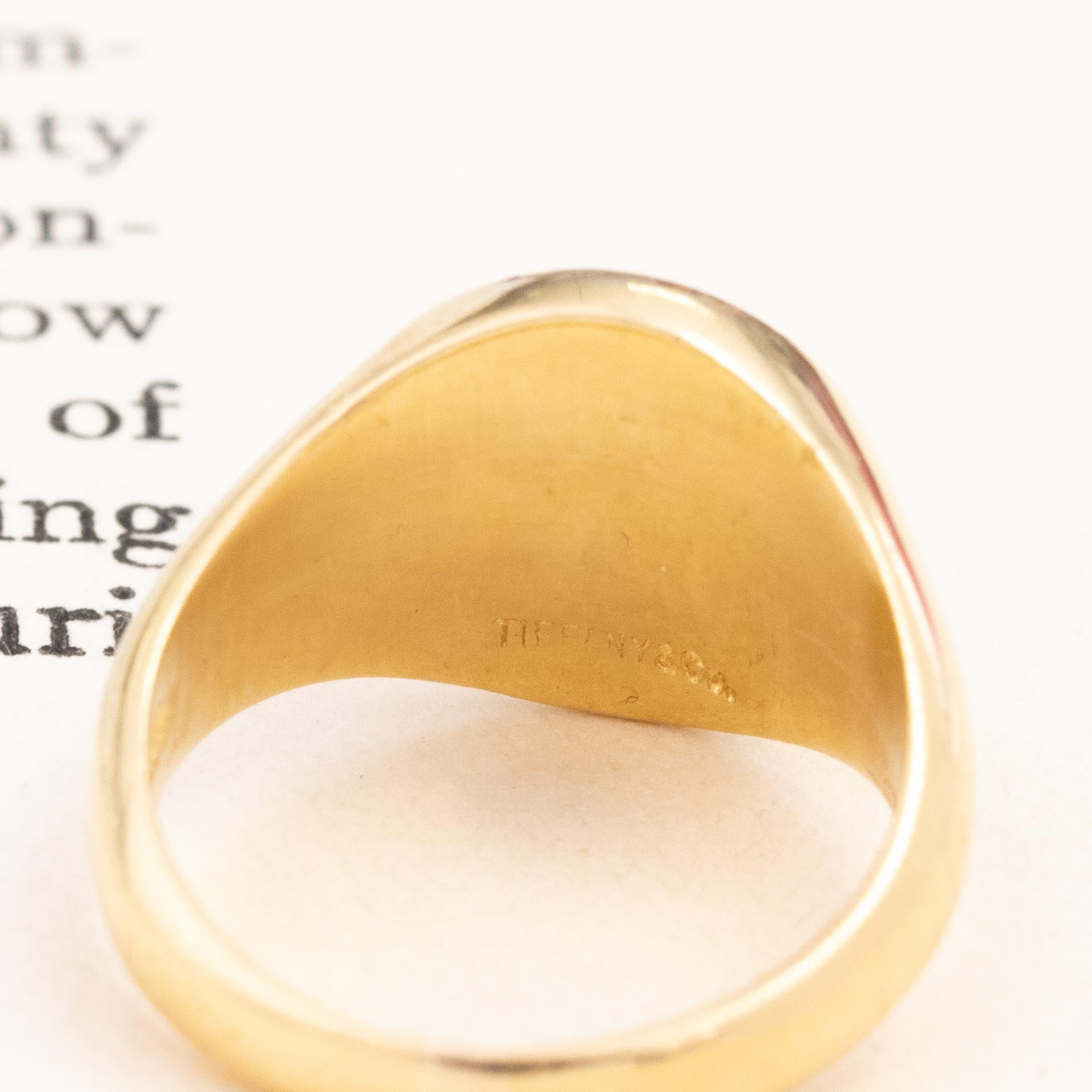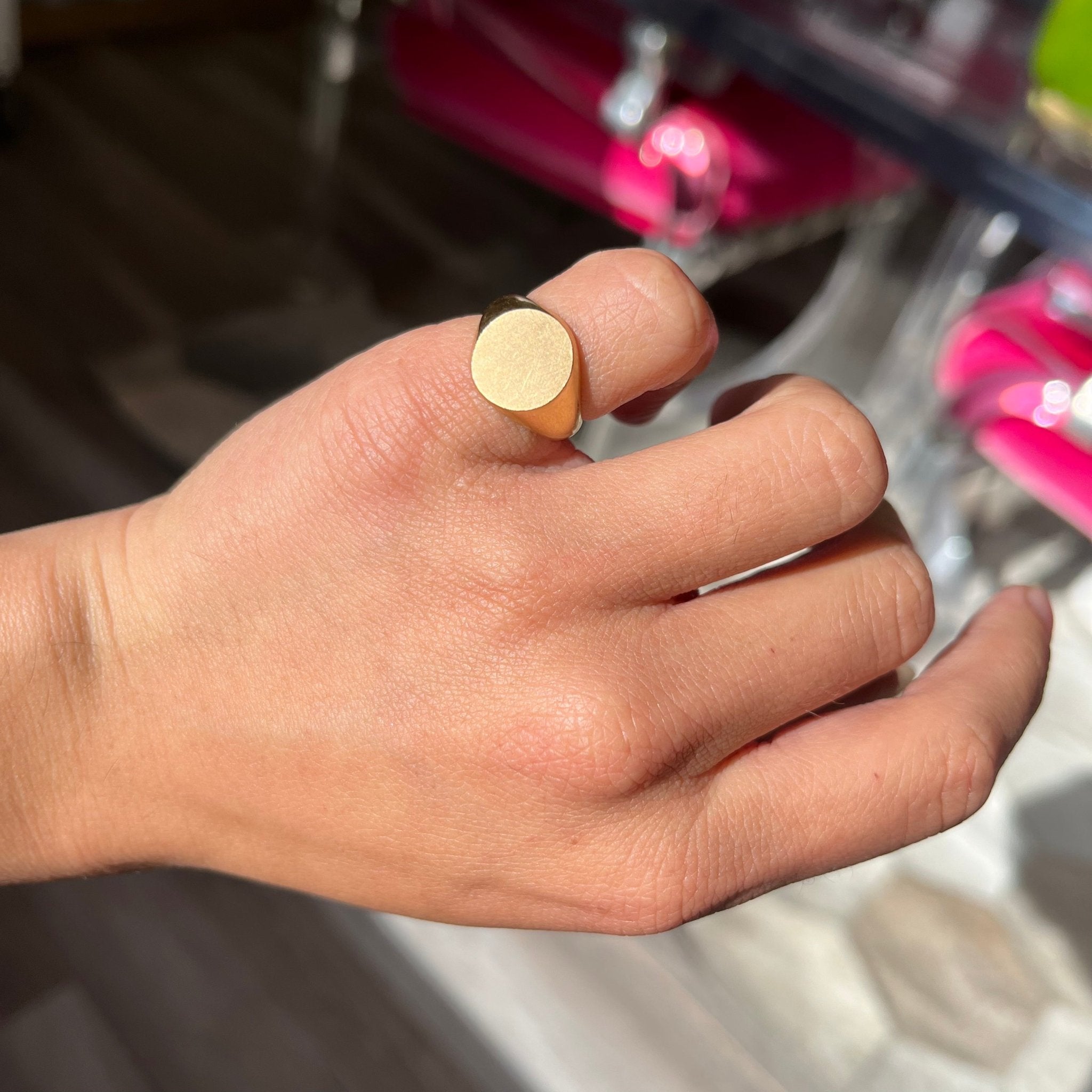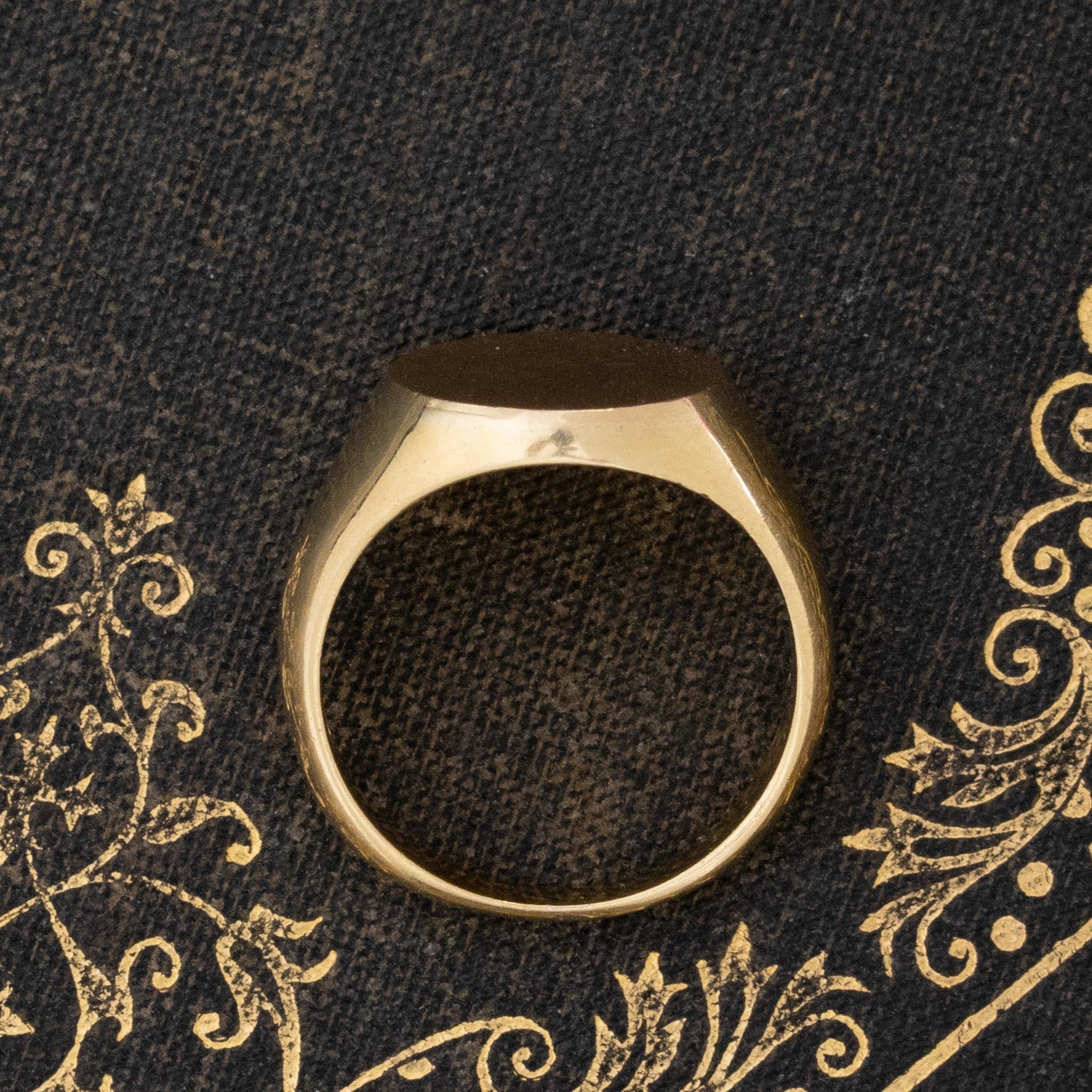 If you are looking for a vintage signet ring upon which you can add your own mark (literally), this vintage ring is the ring for you! Appearing to have never been engraved or stamped, the ring is nice and hefty, sitting nice and low on the finger. A perfect ring for both genders!