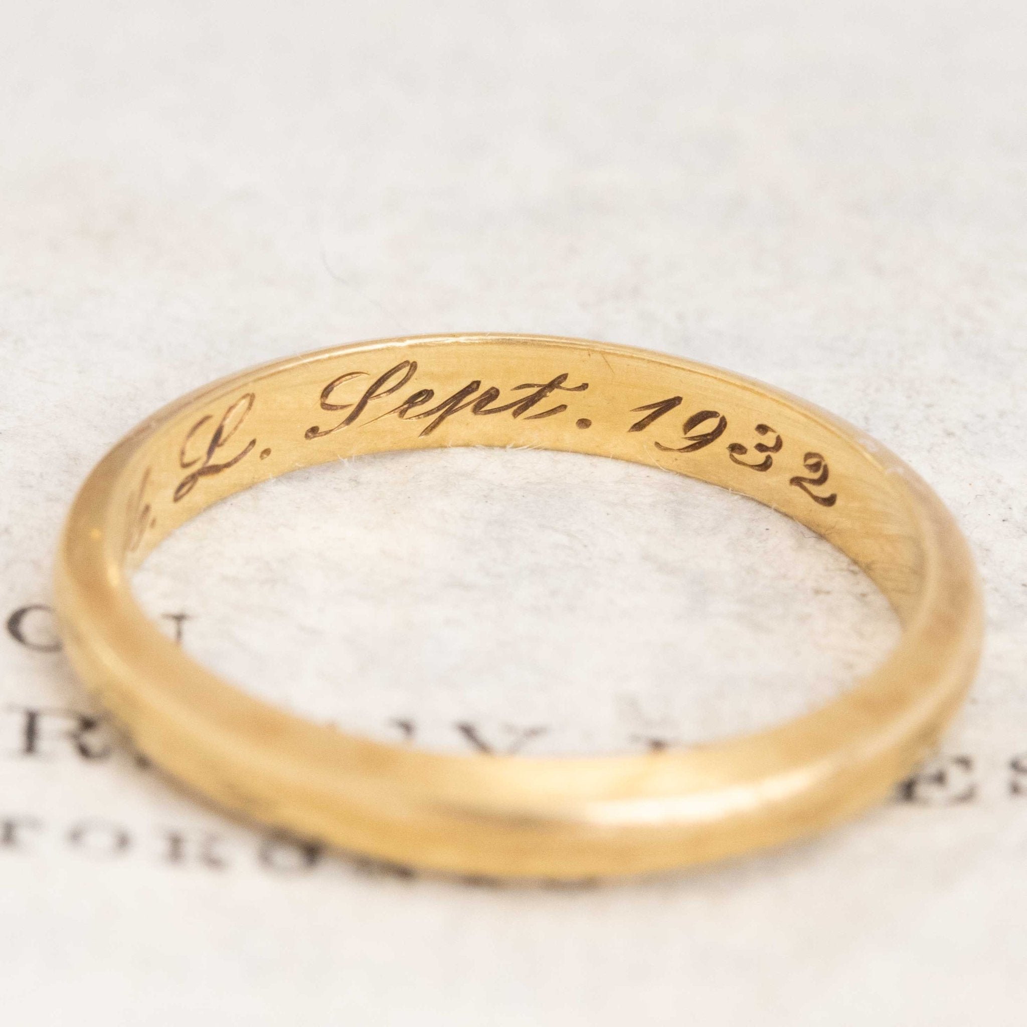 Each time we find one of these bands, we just have to acquire them! We love the the soul and character they possess - and all the love imbued into them! This one is engraved "ML Sept 1932" - how special is she?