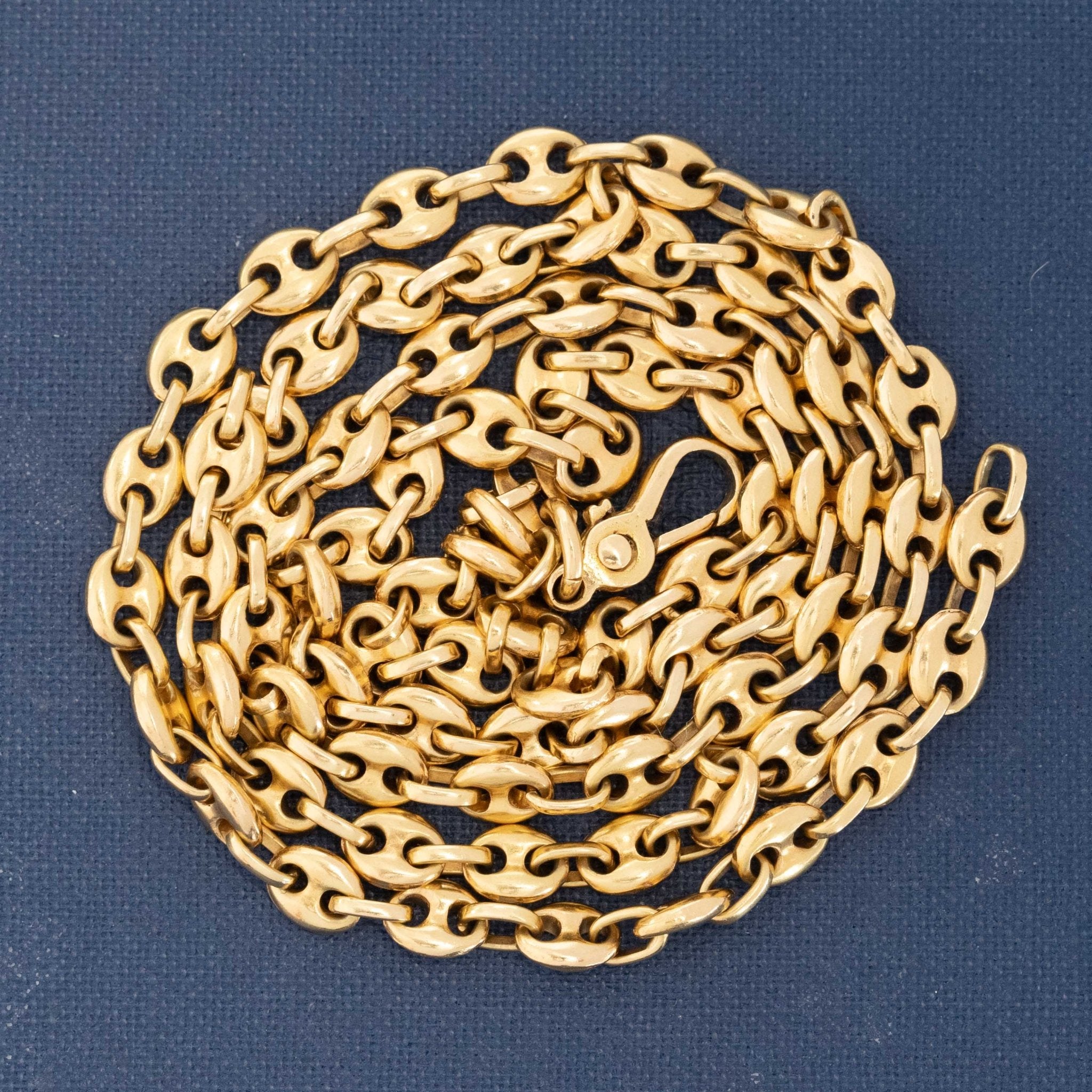 The “puffy” version you see here came later—think late ‘70s through '80s—when Italian goldsmiths started experimenting with rounded, inflated links that caught more light and gave the chain that soft, luxurious volume collectors now seek for its look, tactile comfort, and touch of retro. There’s something inherently nostalgic about it: part nautical heritage, part golden-age glam.