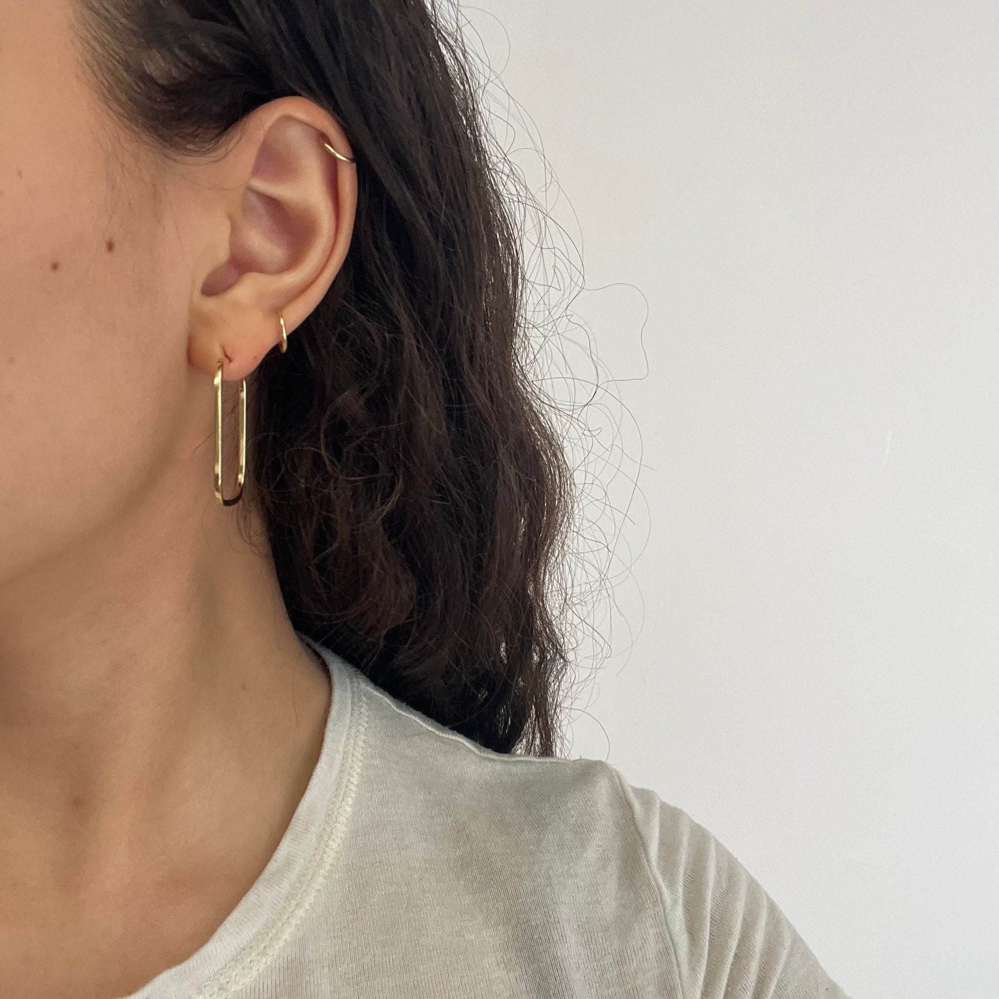 A sweet pair of hoop earrings in a rounded-square shape. Skinny and airy but bold in form - we love how they sit on the lobes and add just a bit of edge to the standard hoop earring.