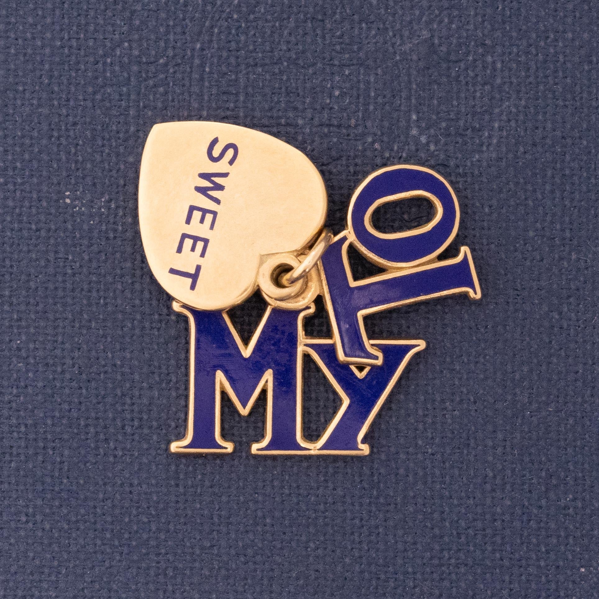 We're squealing inside - aren't you? The most adorable, old fashioned charm - perfect for your sweetheart! Beautiful and vibrant blue enamel.