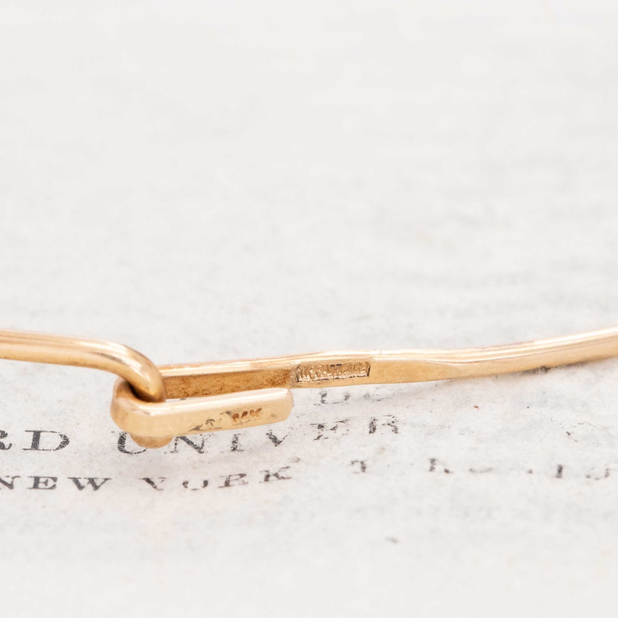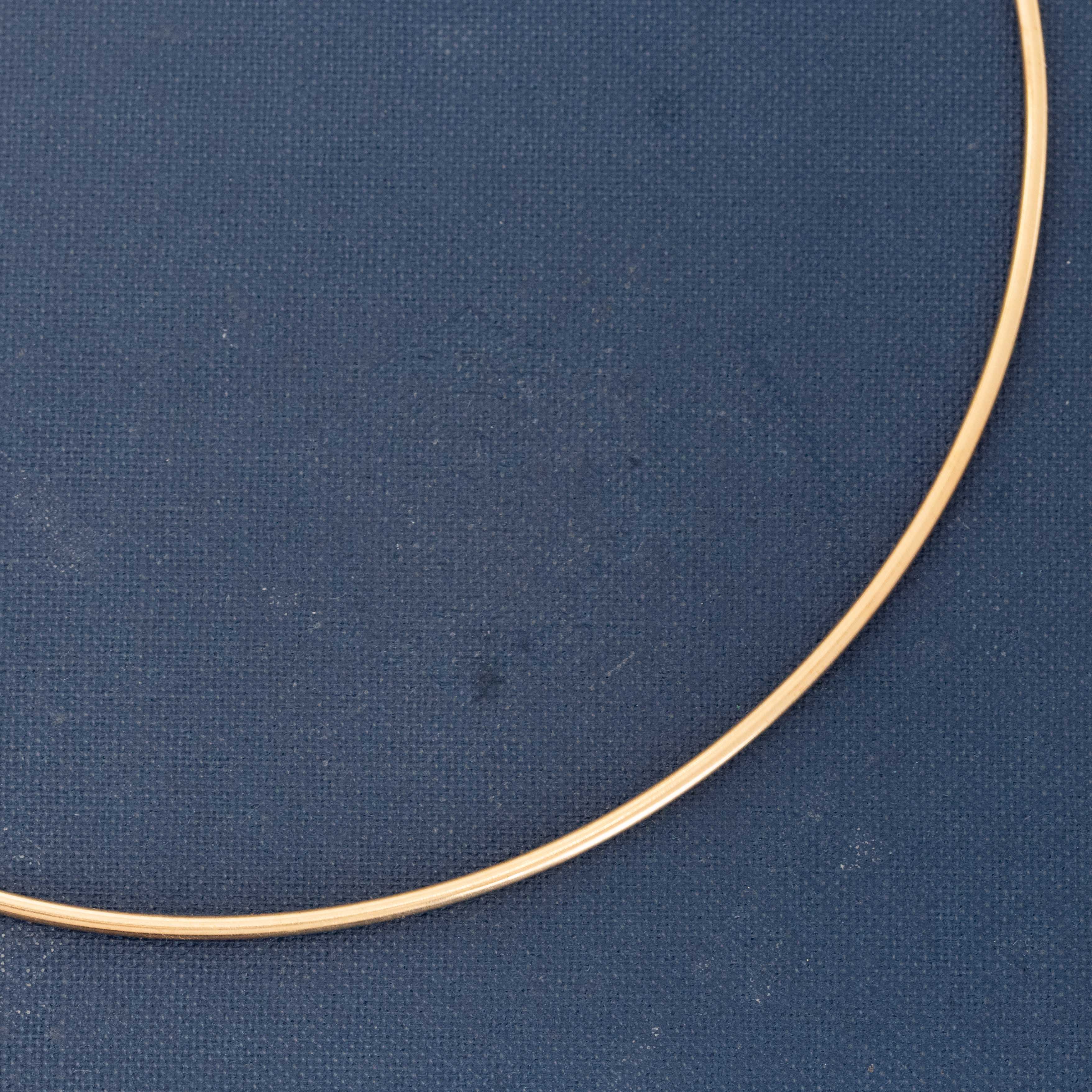 A chic gold collar by the fine folks of Tiffany! A bit on the smaller size (best fit for a 14-14.5” neck), it has a hook/torque closure in the back and would be perfect for wearing a solo pendant. A great find for us!