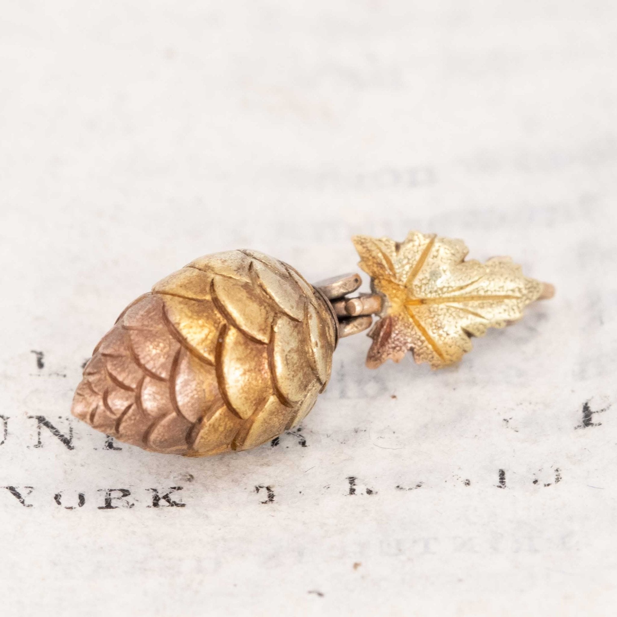 I’ve never seen a pinecone charm so detailed and rich in texture - especially in this scale! Triple tone gold on the pinecone itself, with a “wrinkly” leaf hiding the bale to make for a slight drop effect. Long believed to be a wonderful symbol of life and new beginnings.