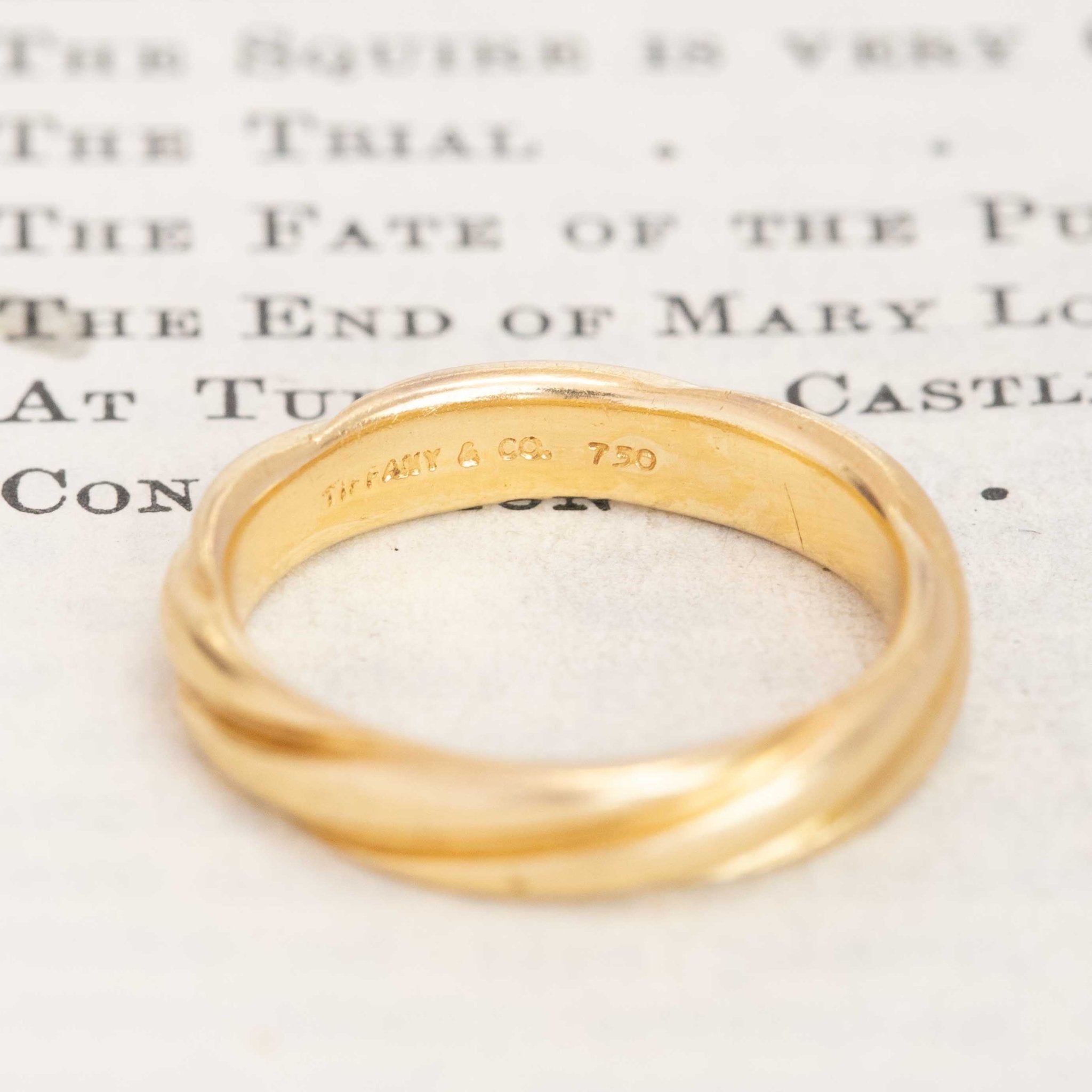 A rarer find for us - this twist style band from none other than Tiffany & Co. in gorgeous 18kt yellow gold. Part of their 1990s collection, its a great choice for those wanting a band with a little more pizzazz. Will be gorgeous stacked with an engagement ring, or other bands!