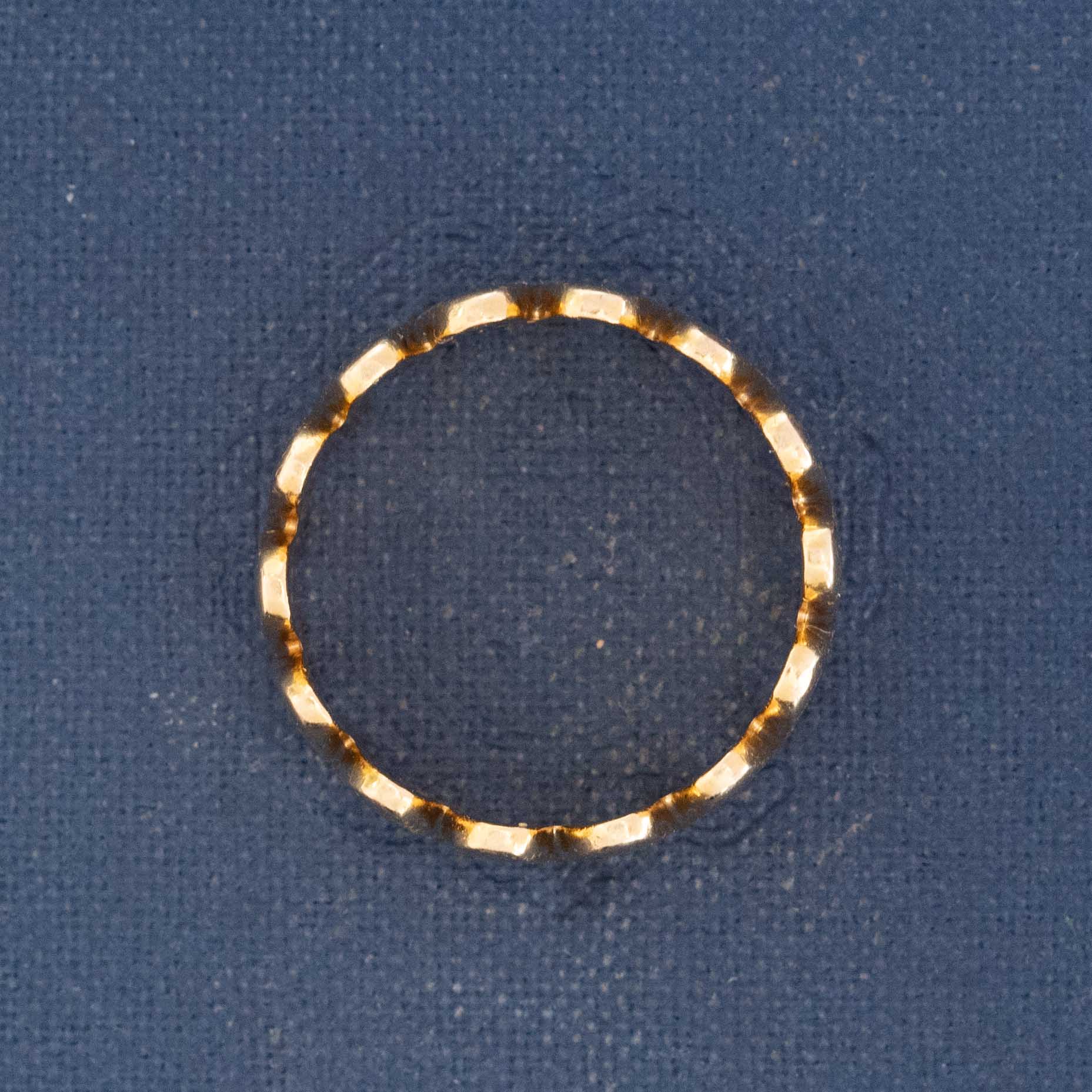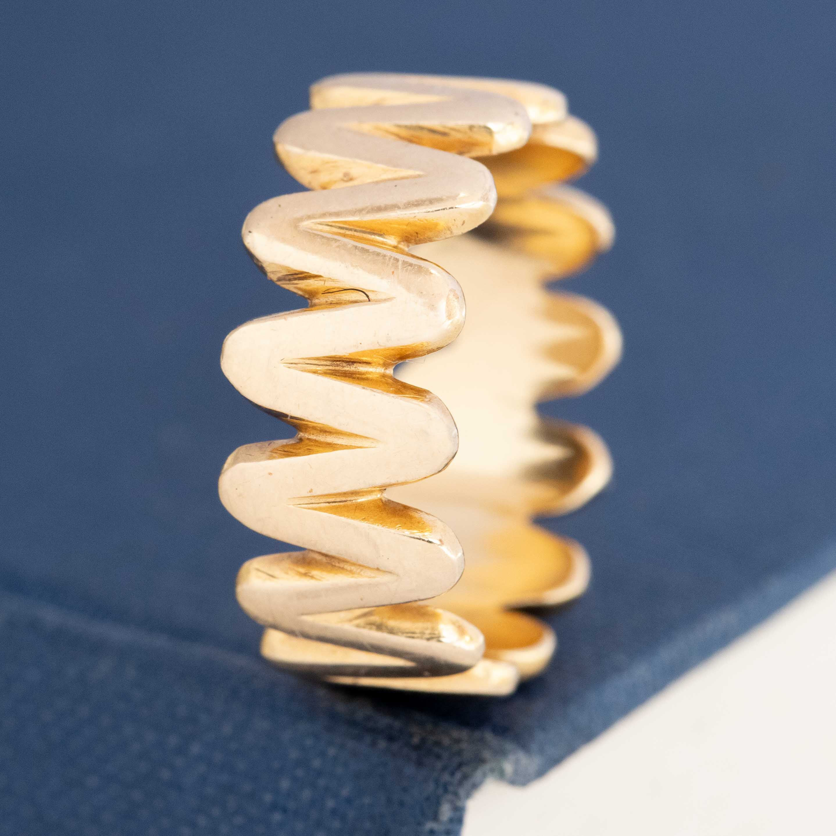Don’t you just love a funky gold band? This one is a wide band that is cigar-adjacent but with a wave pattern that adds a bit of open space, making it quite the comfy wear! I love the fun that it adds to one’s stack, it is both eclectic and elegant.