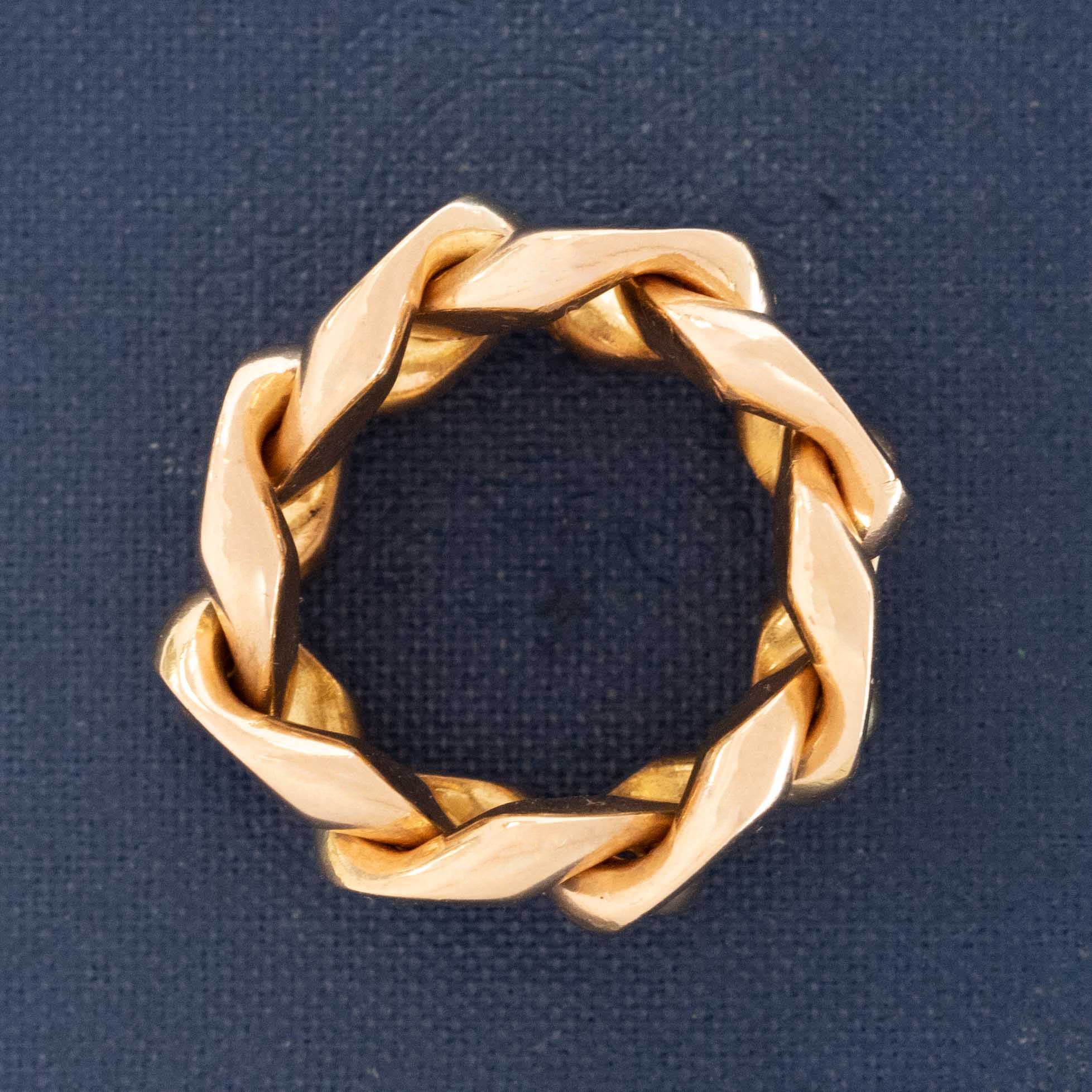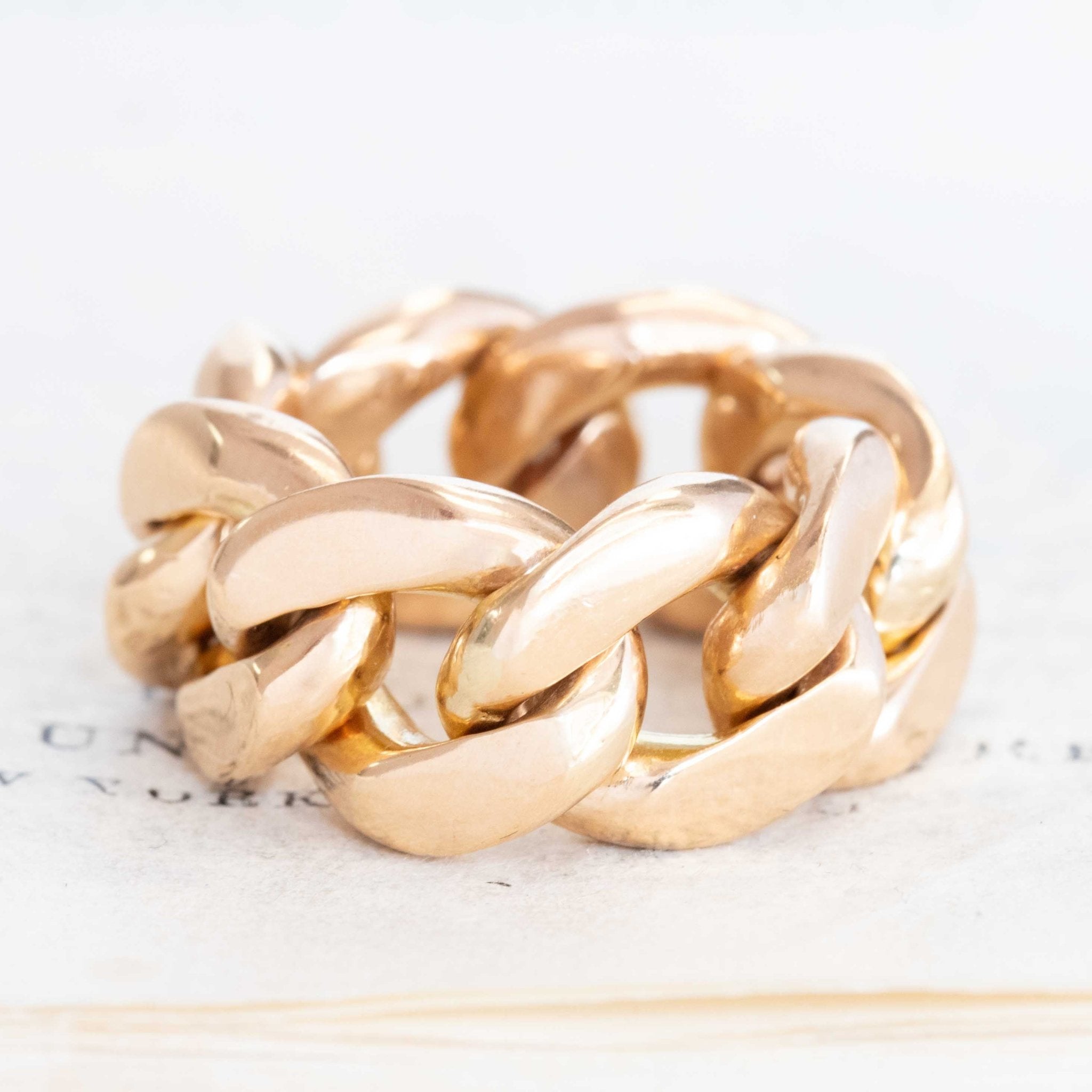 What was once the leftover few links of a jumbo length curb bracelet we turned into the chain link ring of our dreams! Chunky, ultra-solid links come together and sit on the finger in the coolest way. Bold and hefty, and most definitely present, with the open links lending a bit of open space to break things up. Just under 28 grams and toooo good!