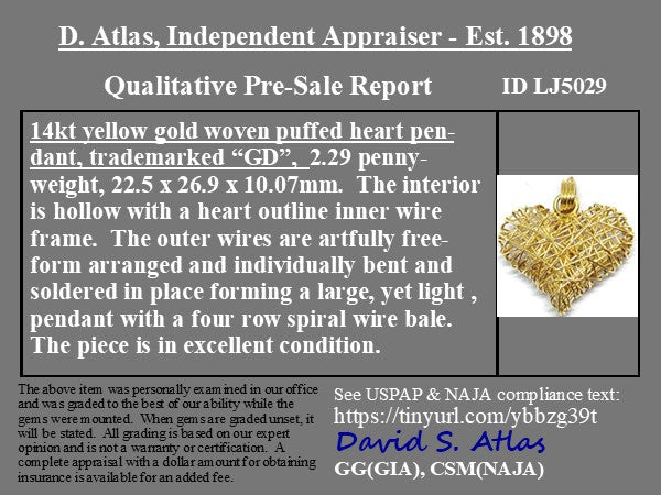 A fun puffy 3D heart with the most amazing weaving of gold!