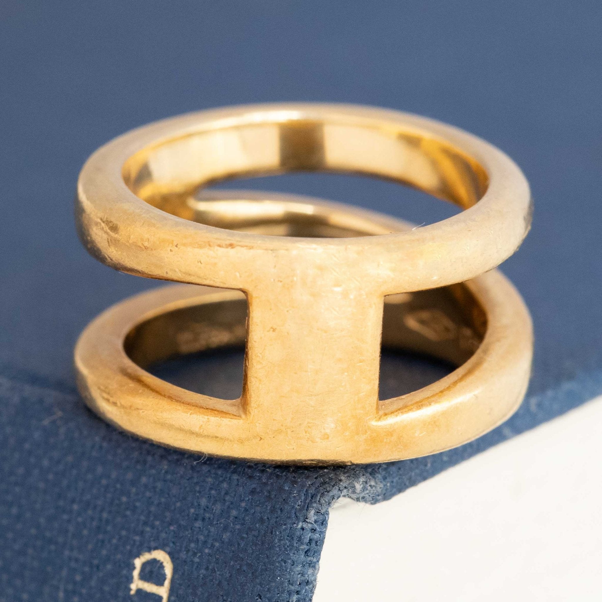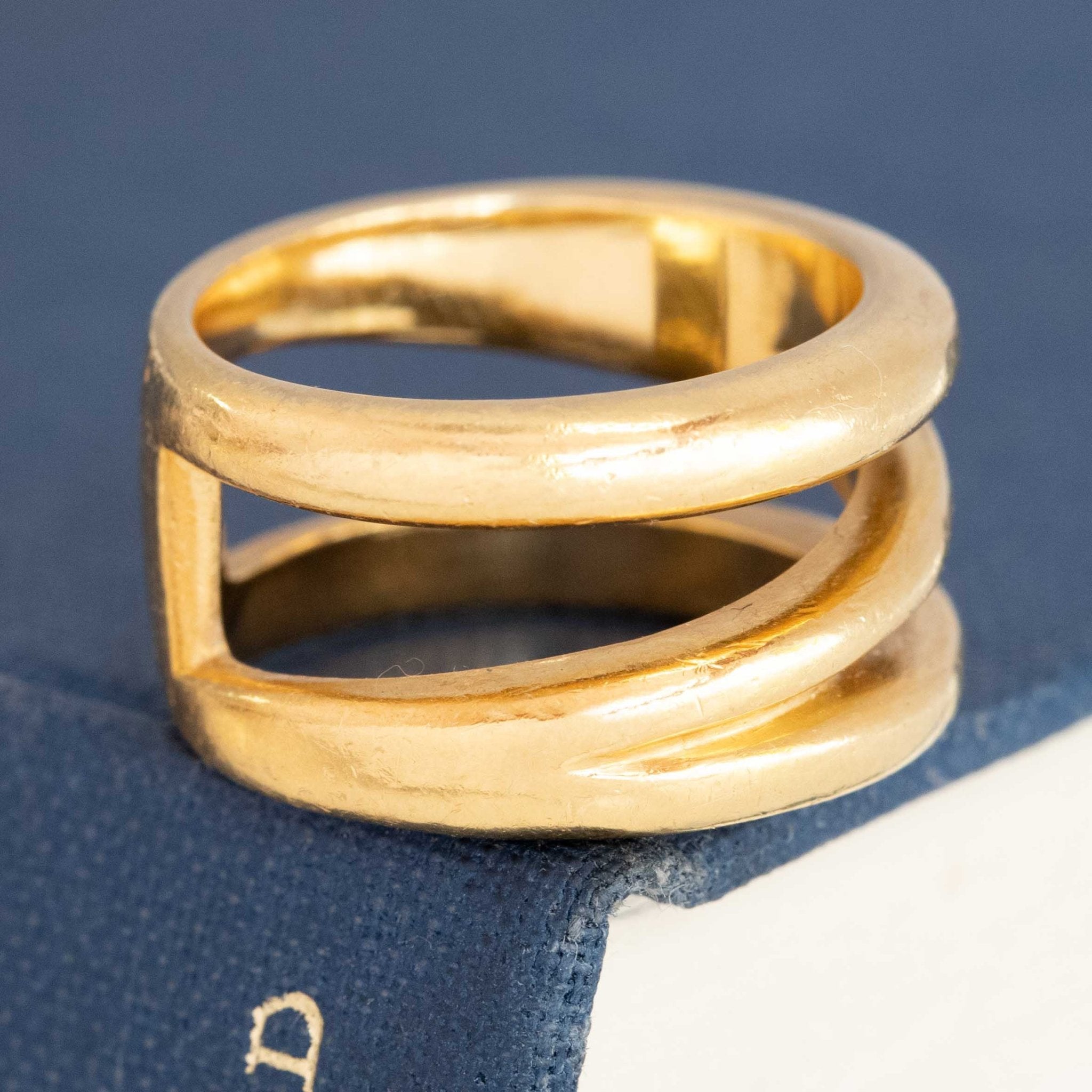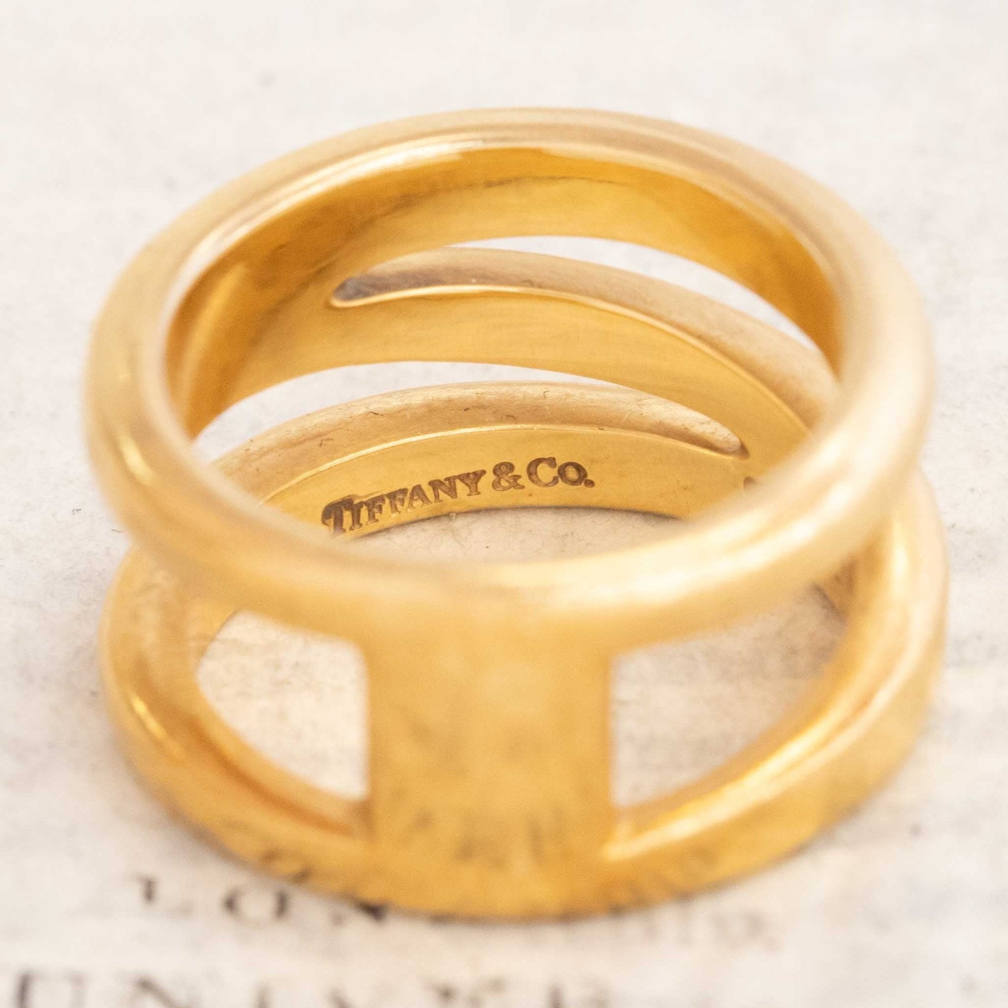 Tiffany 1990s at its finest! The band is both sleek and fluid, with 3 intersecting rows with a T bar at the base, allowing one to wear the band both ways!