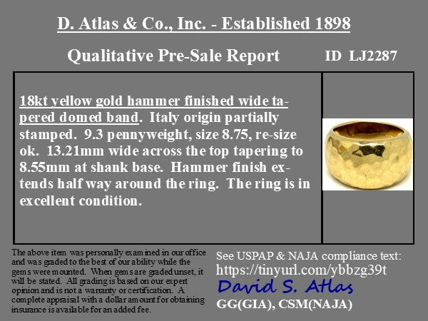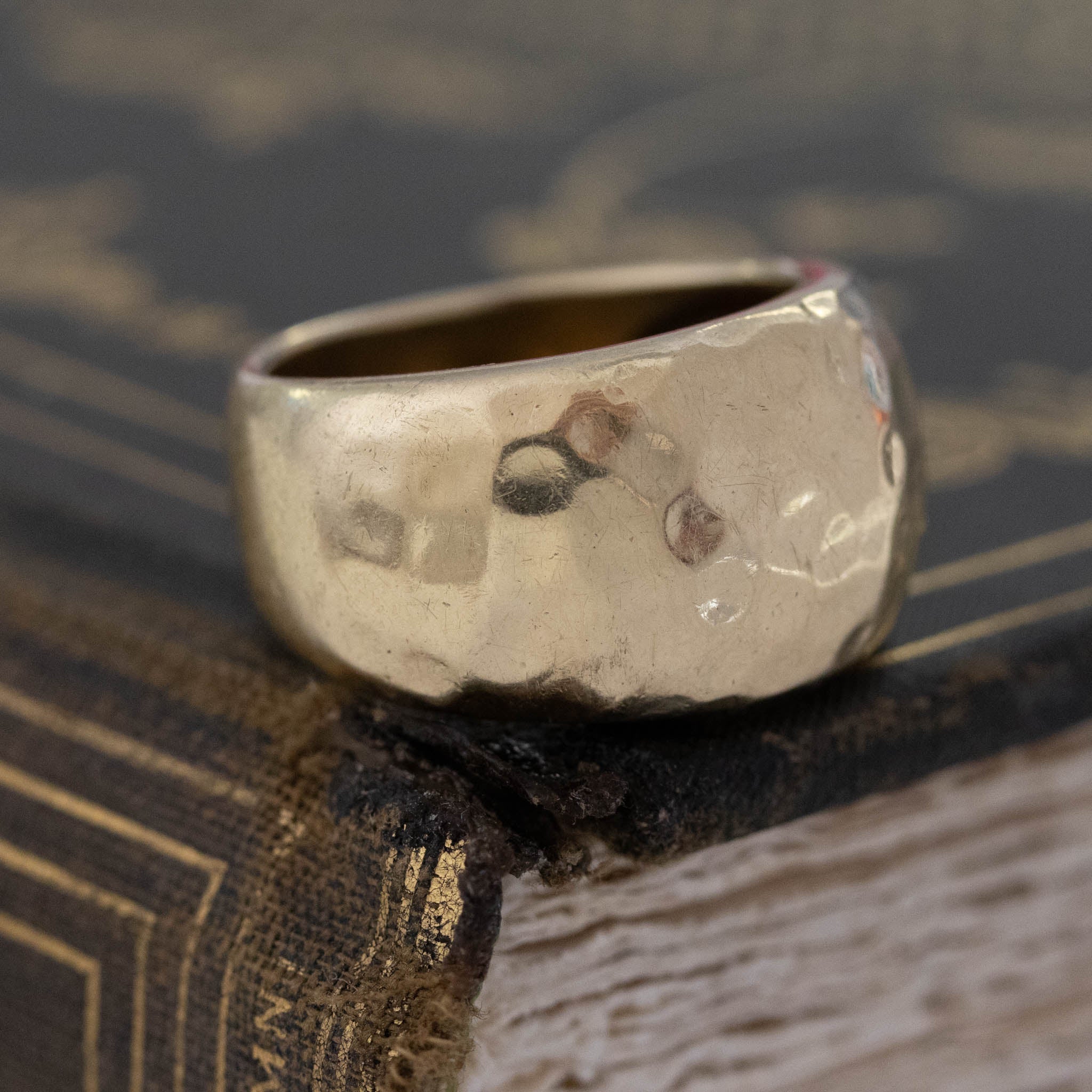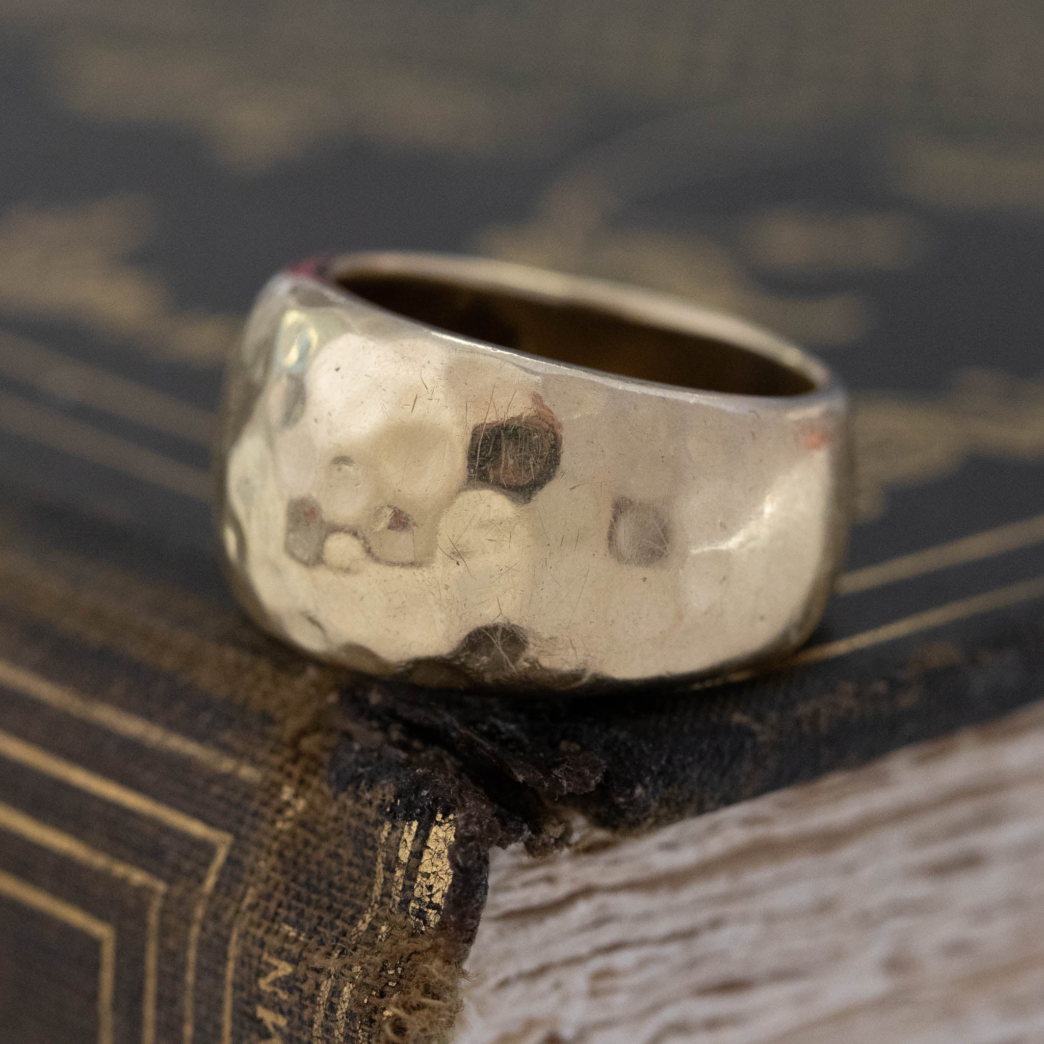 The ultimate in chic-ness, this Italian-made wide band is simply beyond sexy on the finger. Dramatic with a hammered finish, it's the perfect power band. A great choice for the right hand.