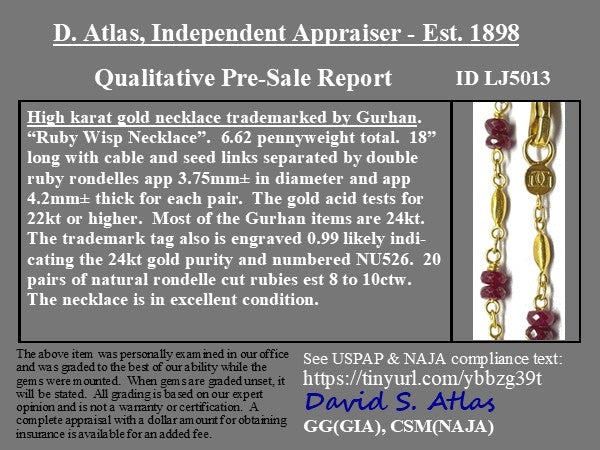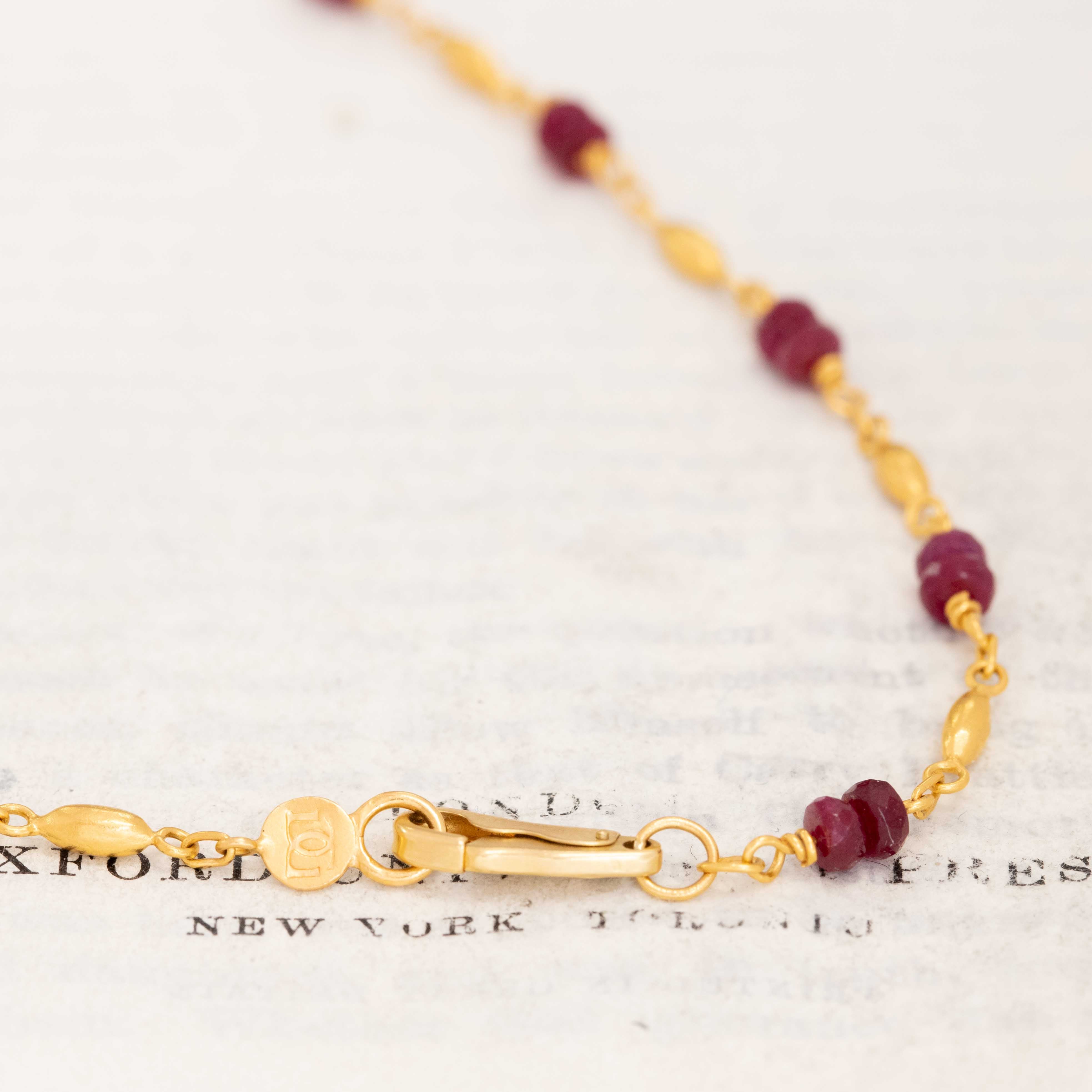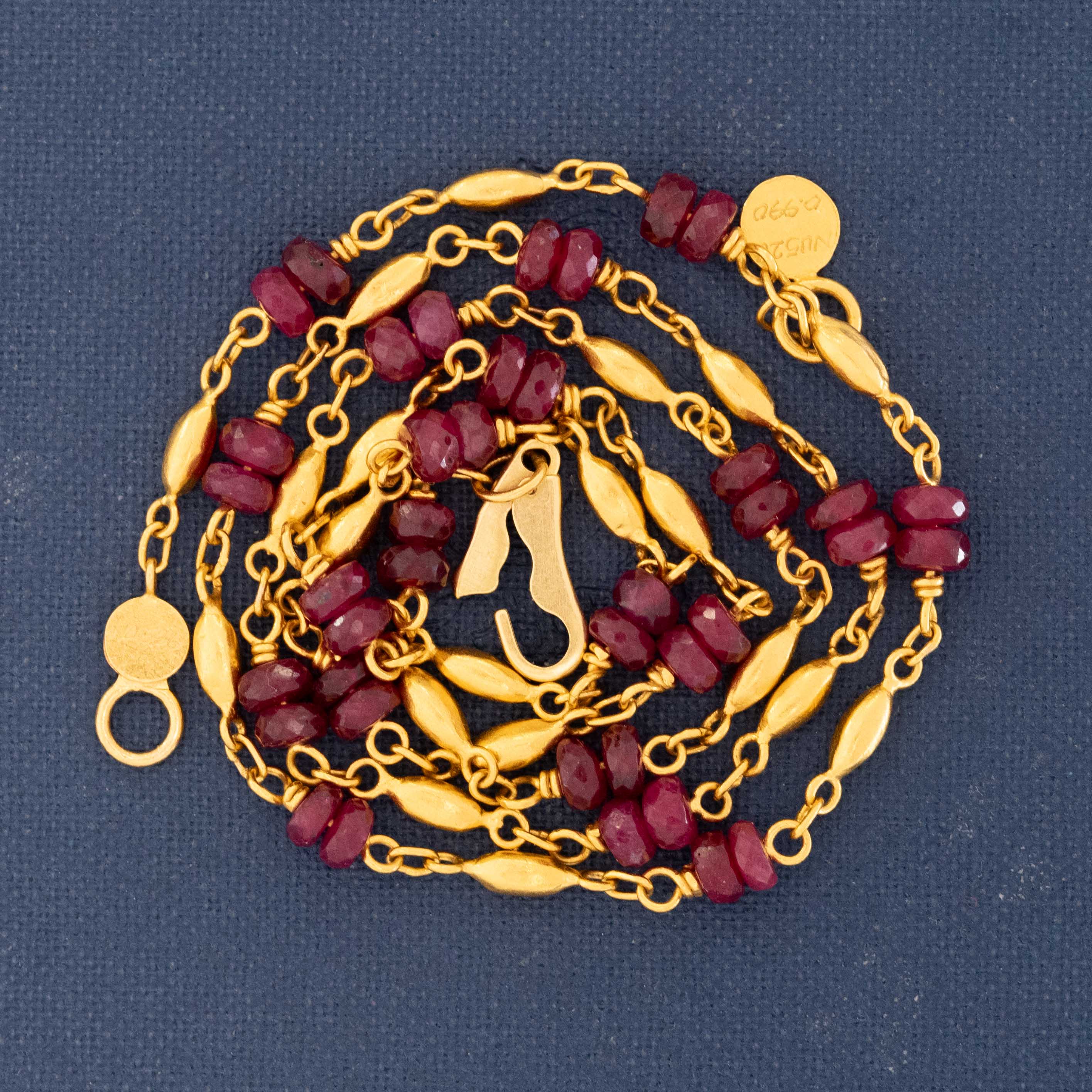 Gurhan is known for their exquisite high karat gold jewelry designs - this necklace with oblong links and ruby beads is an excellent example of this. Coming in at 18" in length, it is perfect for wearing solo or stacked with other chains, bits, and bobs. The color contrast between the high karat gold and the juicy rubies is to die for, and adds a wonderful element to any outfit.