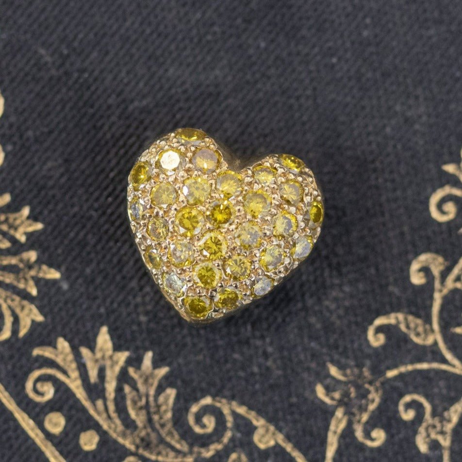 The sweetest little yellow heart we ever did see. This pave puffed heart with fancy yellow diamonds has such a juicy and bright color to it - looking at it is like sunshine. The perfect gift for somebody who exudes the same bright happiness as the heart does